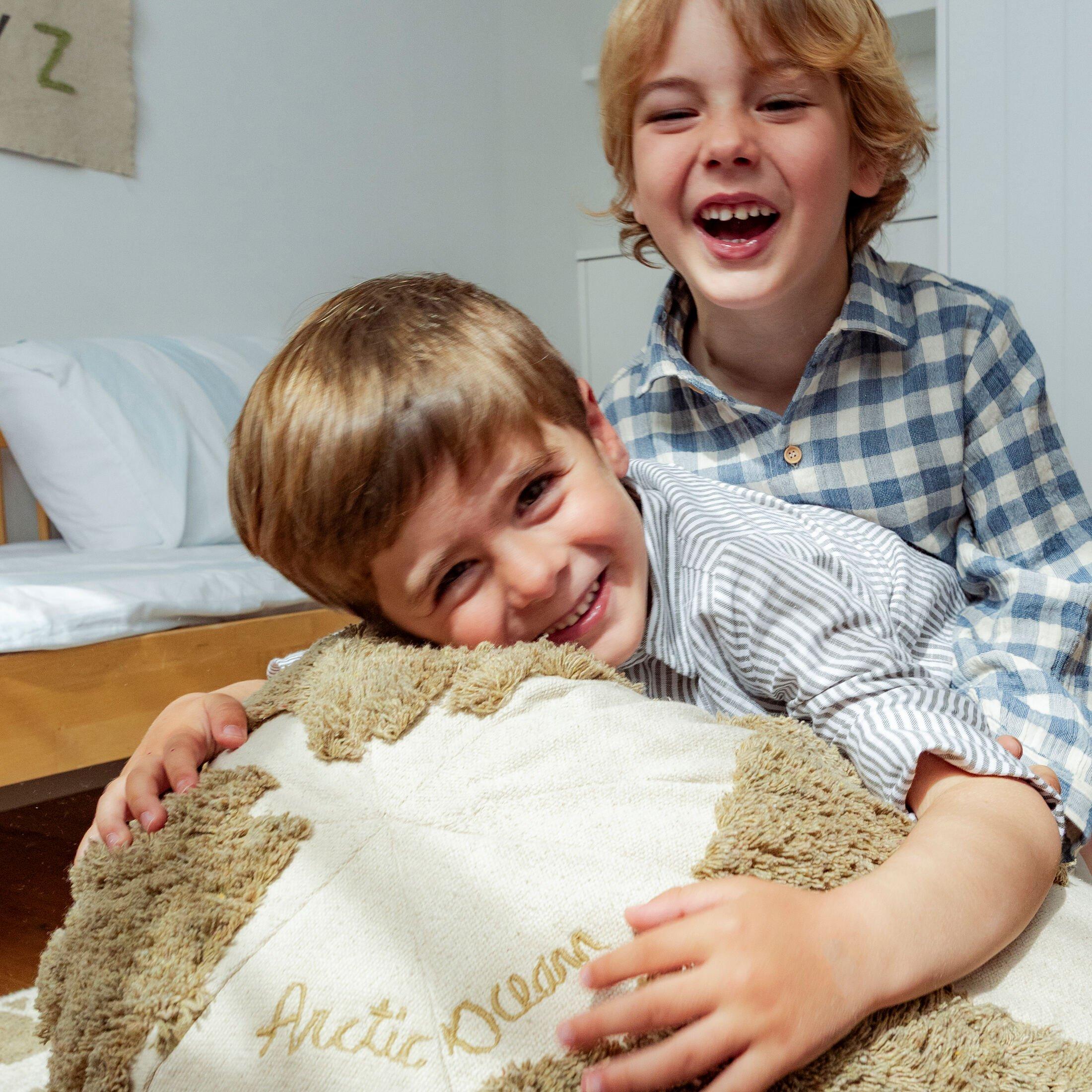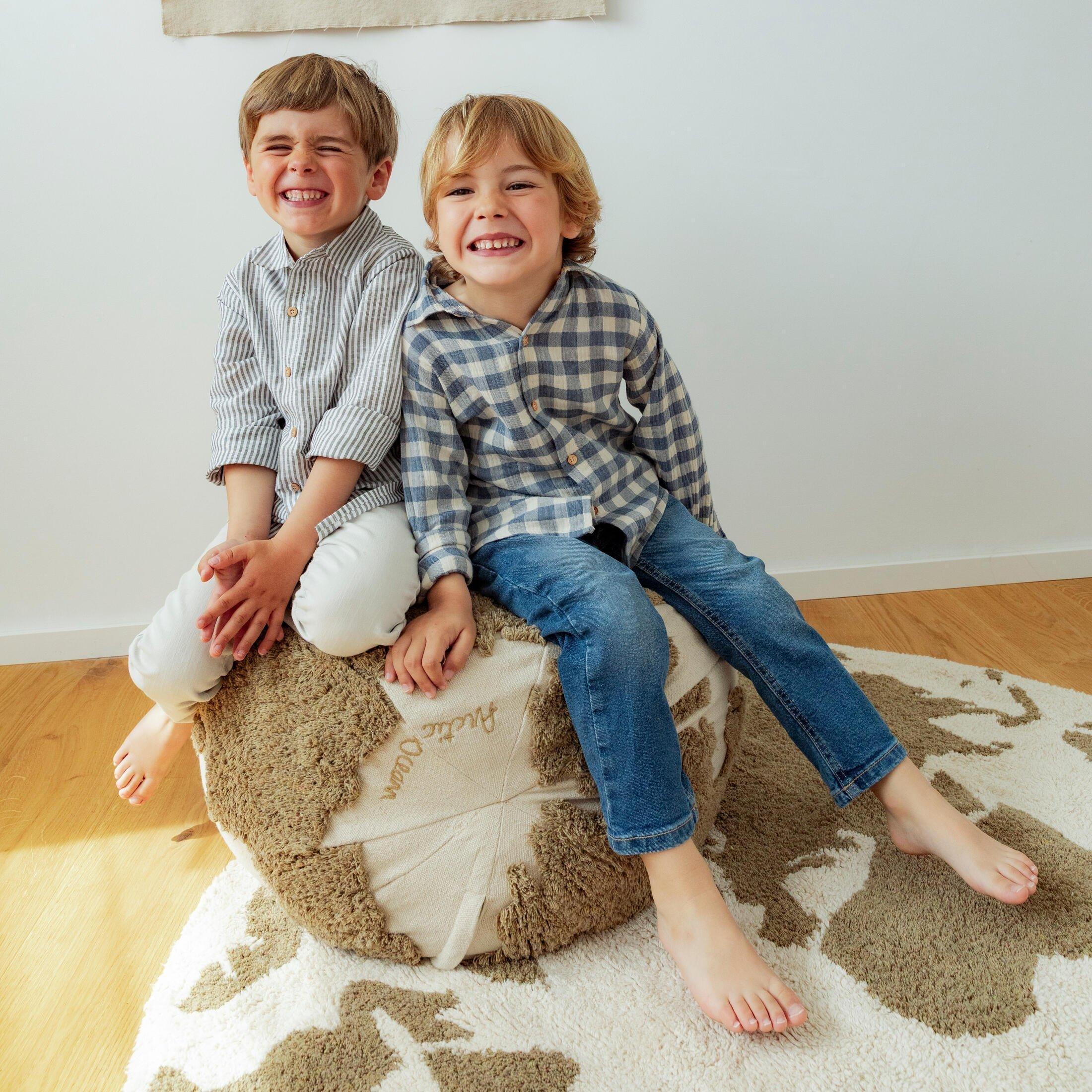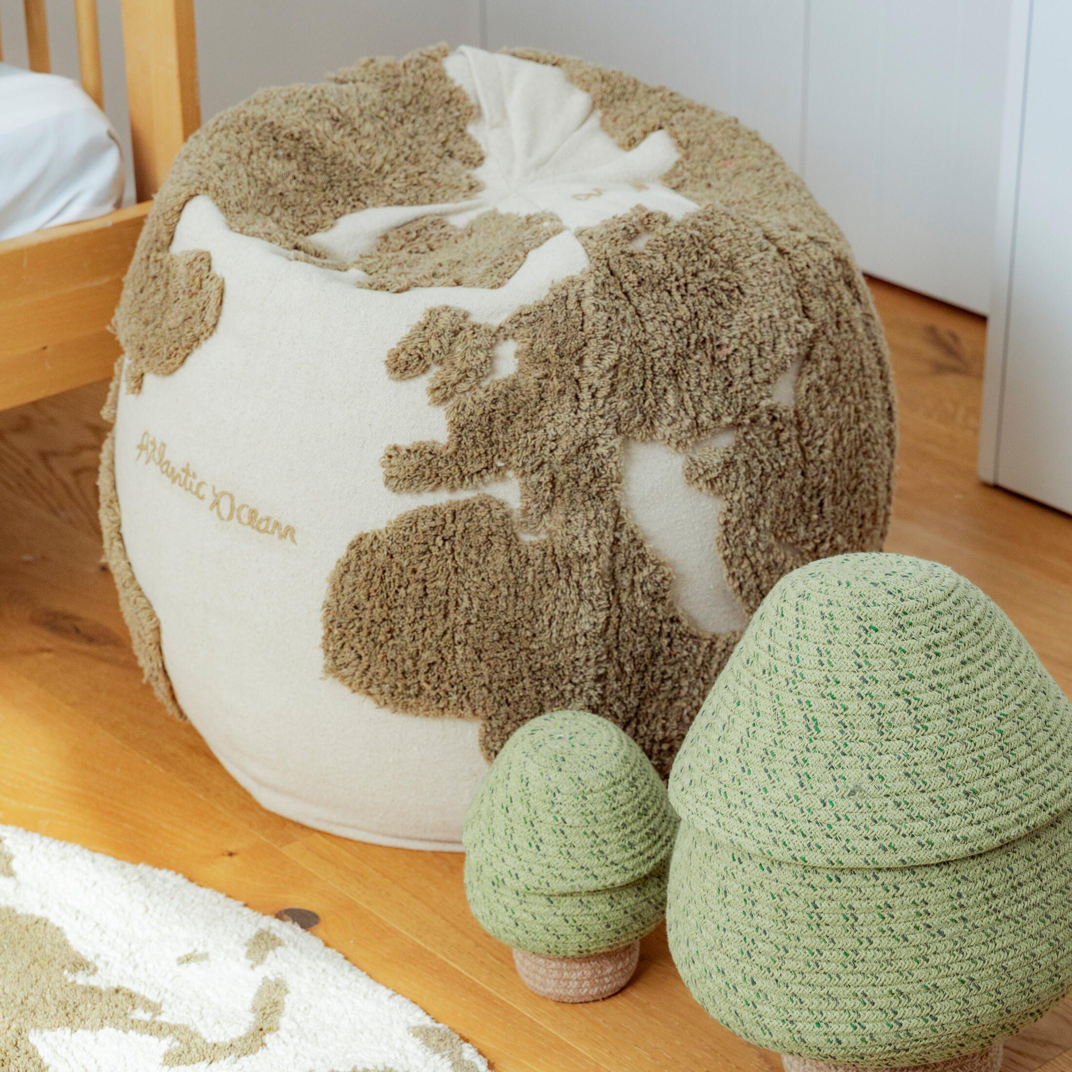 Explore the world sustainably with our Rugcycled World Map Pouf, thoughtfully crafted from leftover rug scraps. This piece revives our RUGCYCLED® concept, now with a twist: the recycled yarn is specially dyed to avoid unwanted color blends, resulting in a naturally unique tone for each pouf. Finished with recycled canvas, it’s a soft and conscious choice that brings purpose and play into any space.