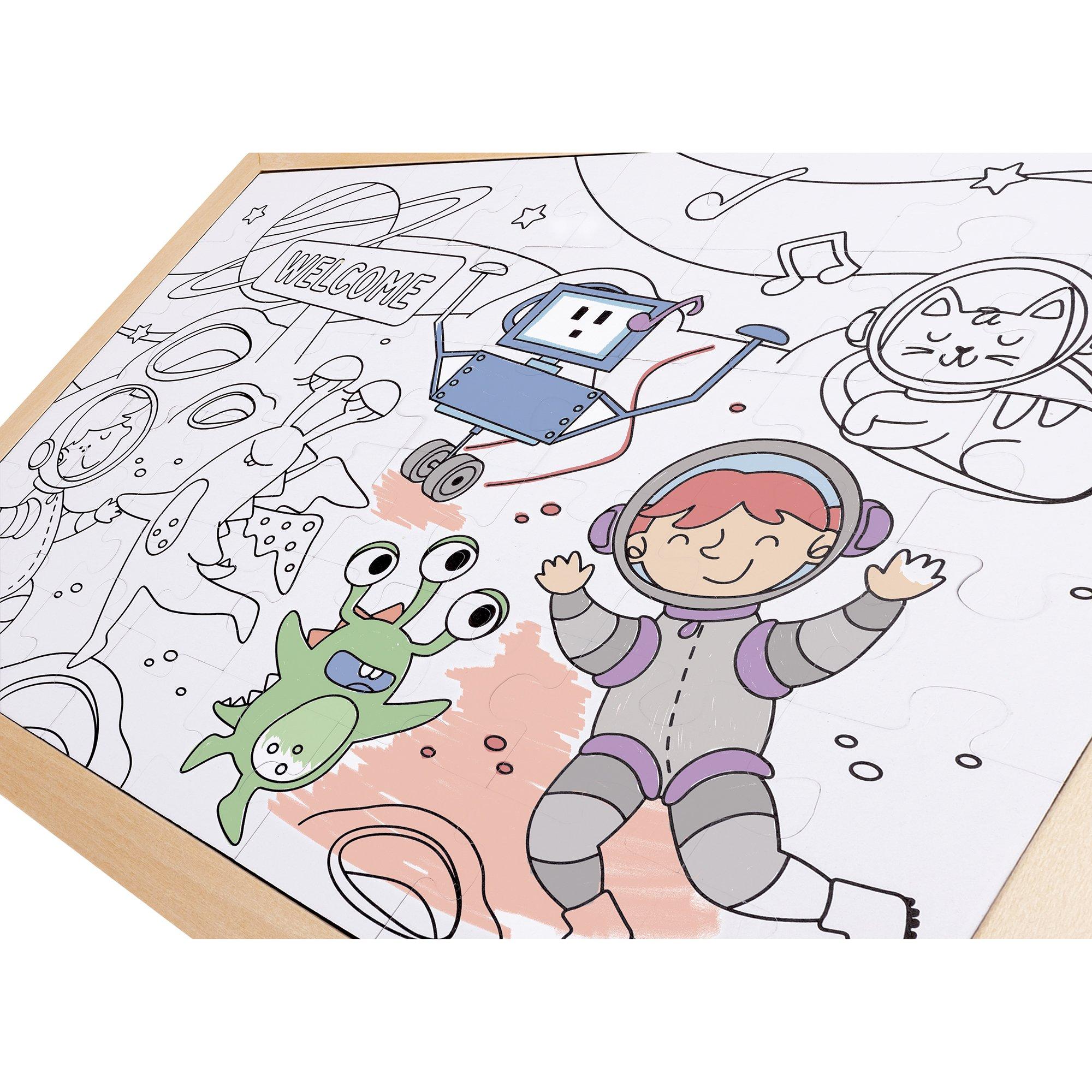 2-IN-1 REVERSIBLE STYLE: This 48-piece puzzle offers dual options—an already colorful version and a plain outline for children to color themselves, providing endless creative possibilities.