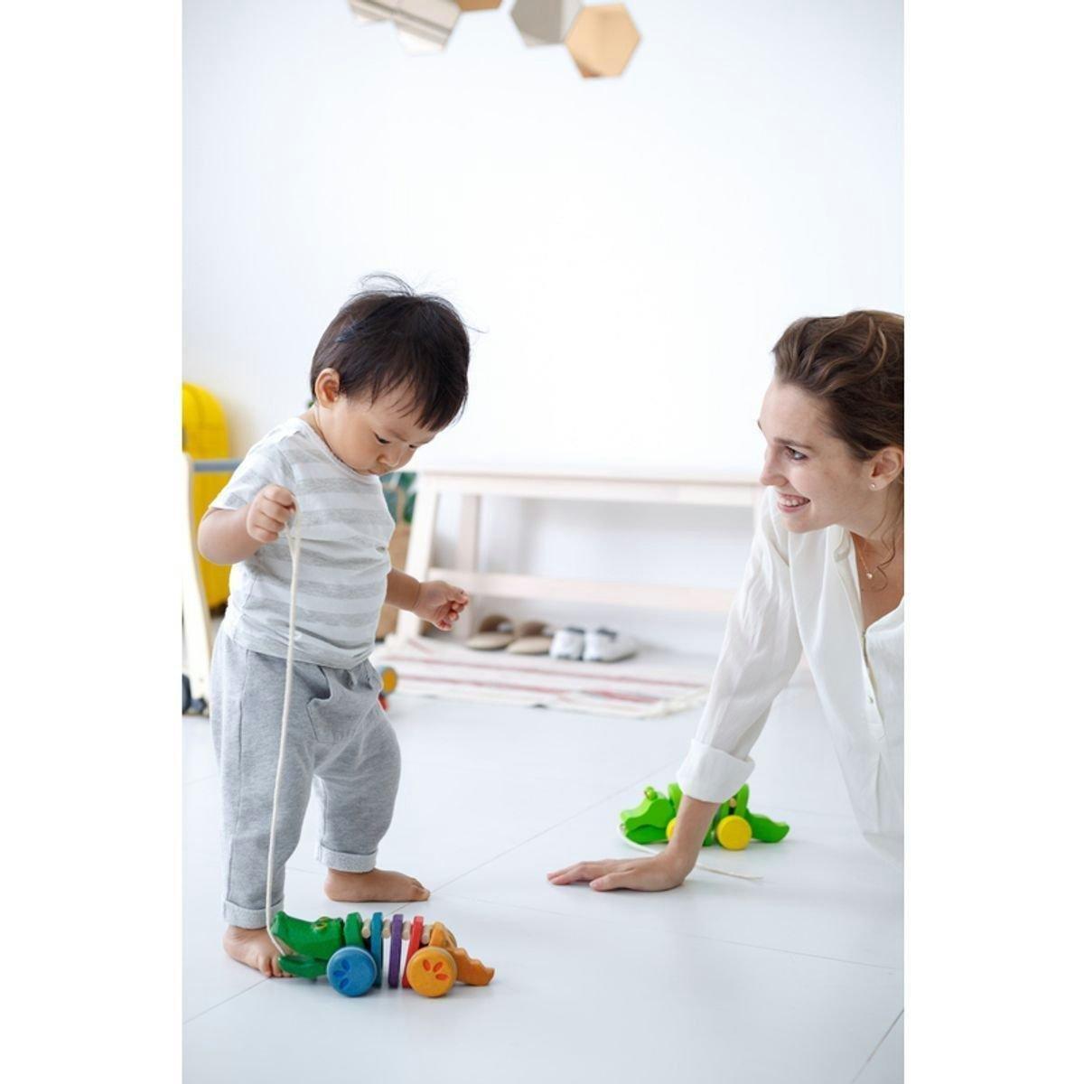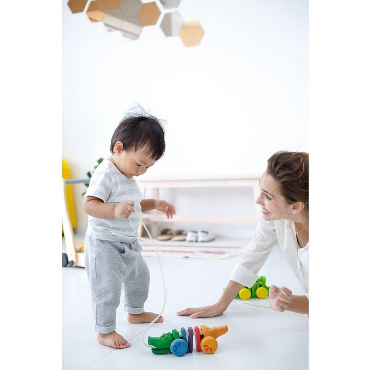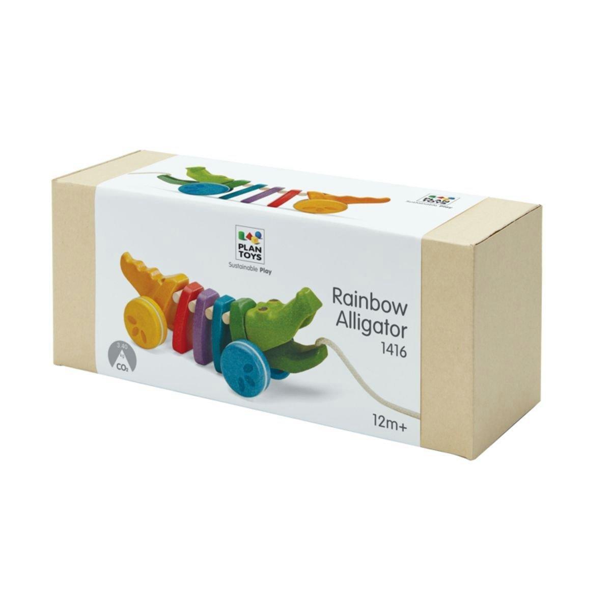 • This colorful Rainbow Dancing Alligator is made from PlanWood. When children pull the Alligator, its head and tail move up and down – making a fun click-clack sound.