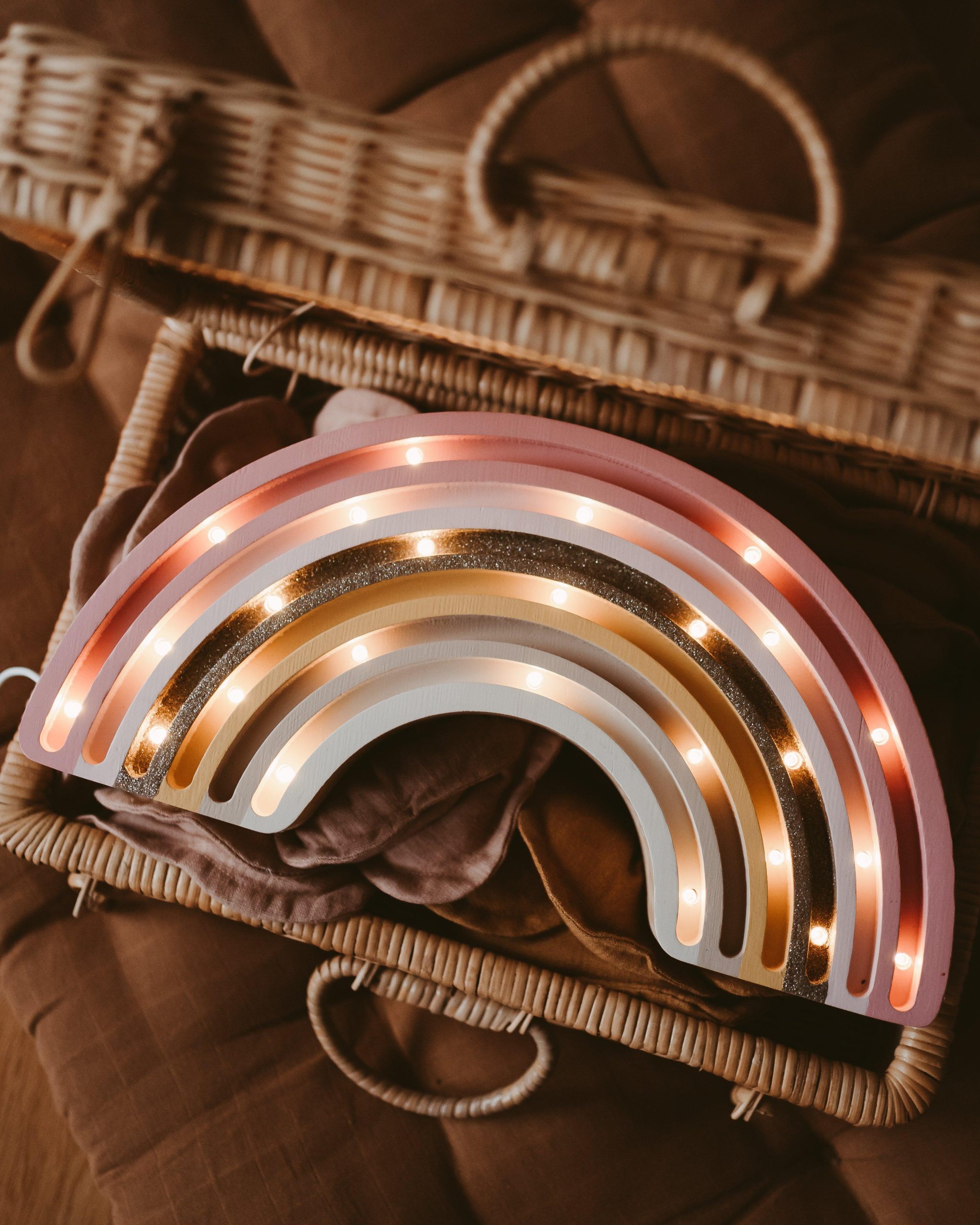 A kaleidoscope of colorful dreams awaits your little one when they fall asleep next to this Little Lights Rainbow Lamp.