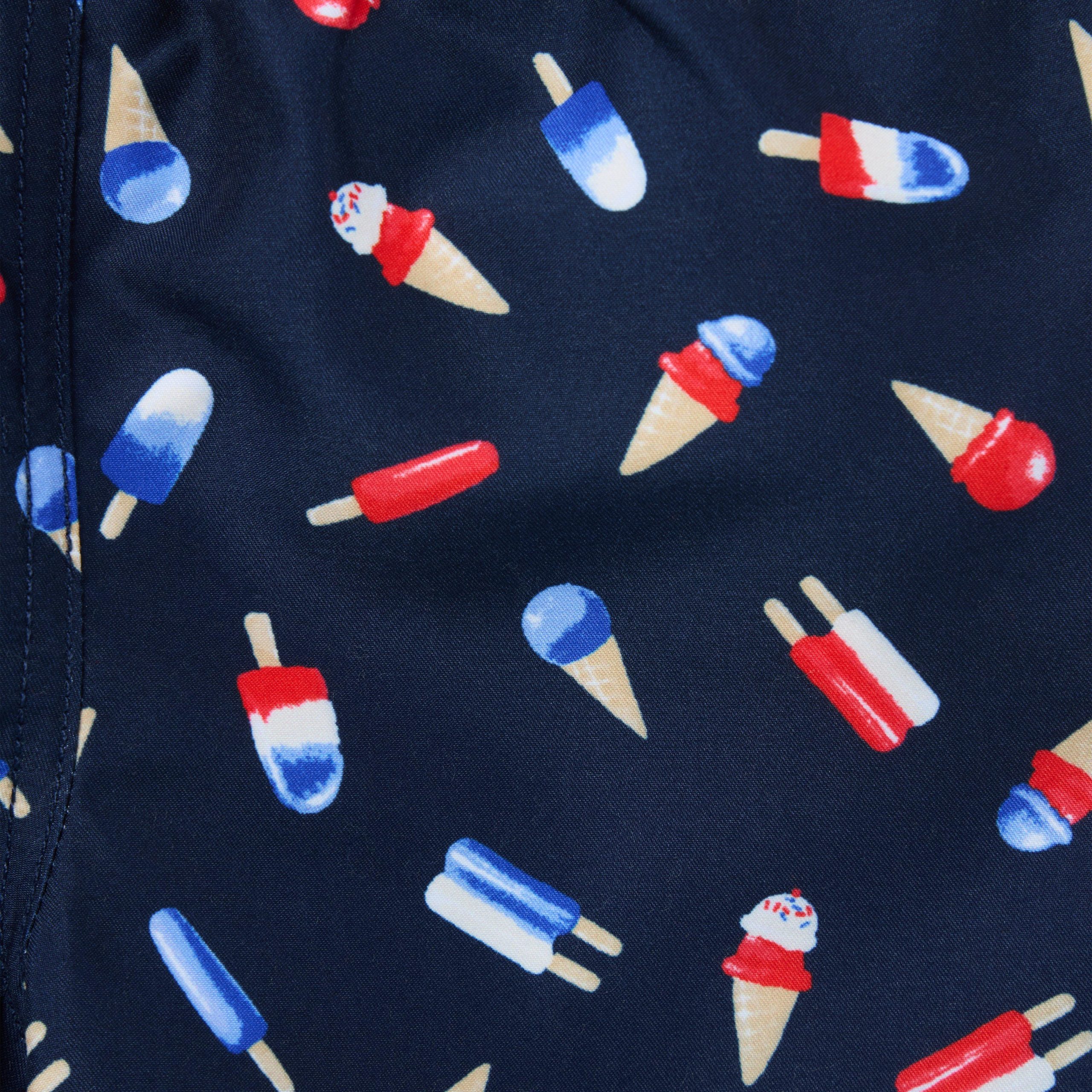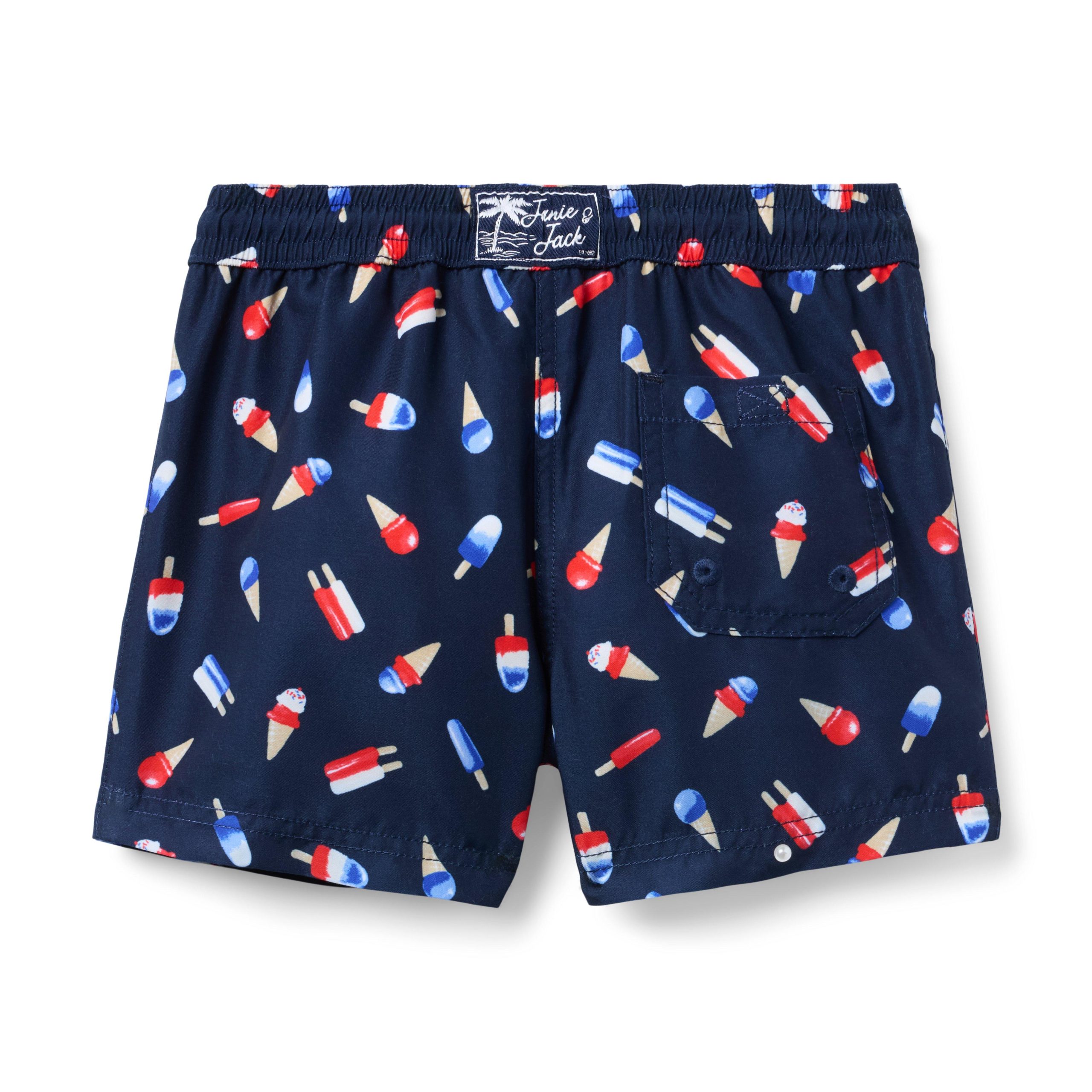 • It’s a sweet take on our swim trunk, thanks to an allover popsicle print. Designed with UPF 50+ sun protection, a touch-close back pocket and embroidered eyelets to let water drain out. Responsibly made with recycled fabric.