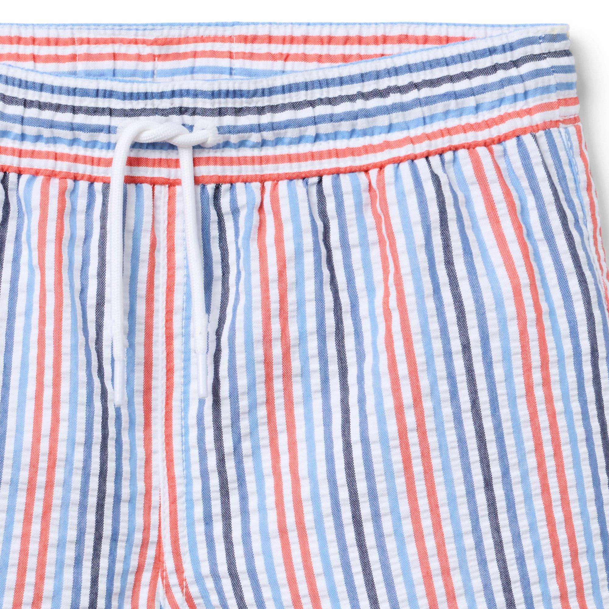 • A sunny swim look that’s just our stripe. Our seersucker swim trunk features UPF 50+ sun protection, a touch-close back pocket and embroidered eyelets to let water drain out. Responsibly made in recycled polyester.
