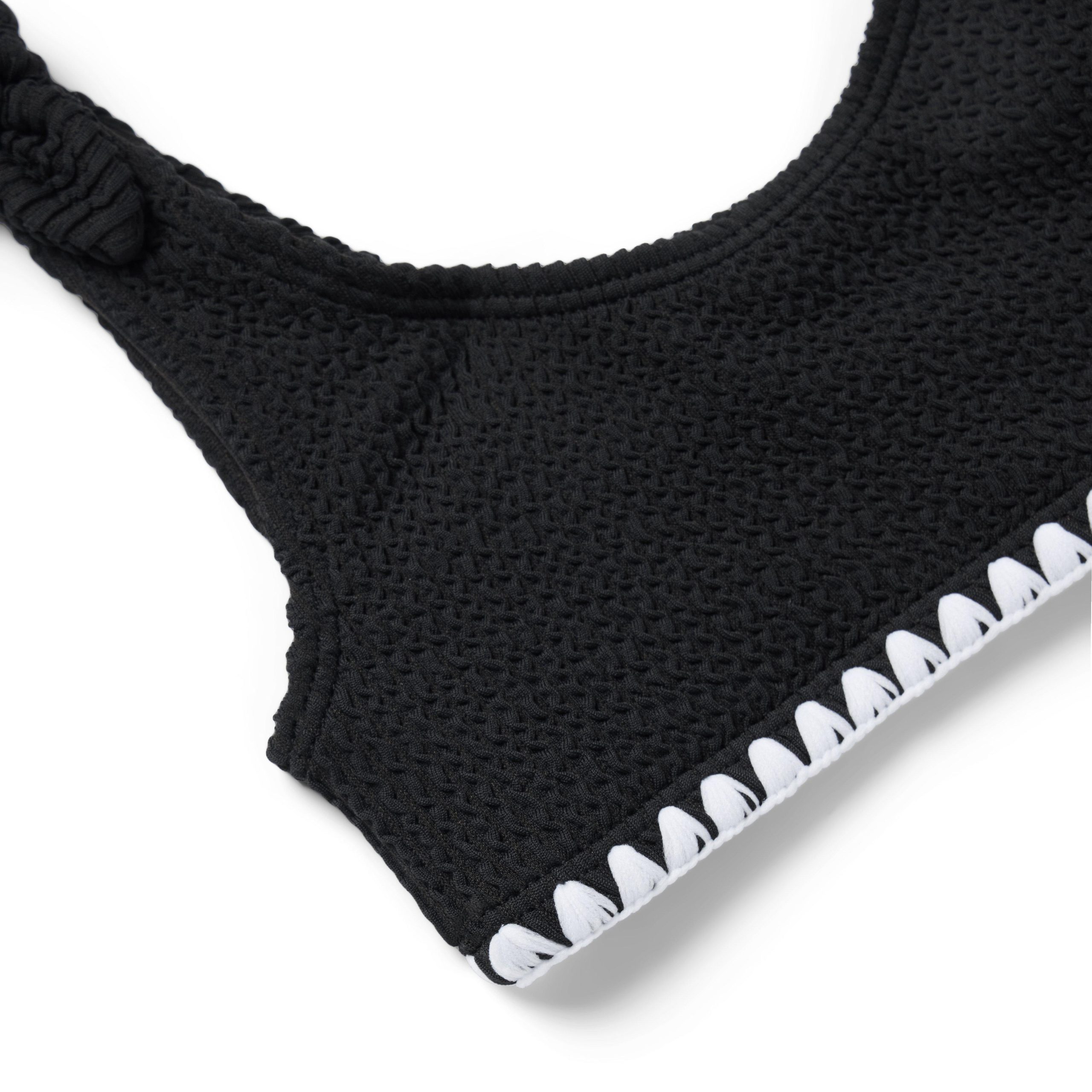 • Wave hello to this textured swimsuit featuring contrast stitching and bow straps too. Plus, UPF 50+ sun protection to help keep them stylishly safe. Responsibly made with recycled polyester fabric.