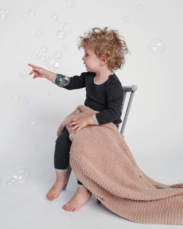 Comfywear is here. Envelop your little one in the softness of the Fuzzy Ribbed Blanket. Crafted from 100% recycled materials, this blanket features a cushy ribbed texture that provides the ultimate warmth and comfort for all cozy nap times, weekends away, and snuggles at home. This eco-friendly blanket is the coziest addition to any nursery. Machine washable & dryable. No pilling!