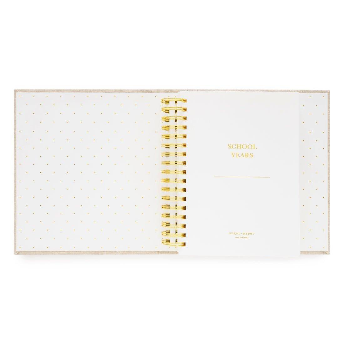 • It goes so fast. Hold on to every memory with the School Years Photo Book, the perfect place to tuck away the memories from every passing year from kindergarten to high school graduation. Featuring all your favorite Sugar Paper details with a fabric bound cover, spiral binding, photo pages, keepsake pockets, and more.