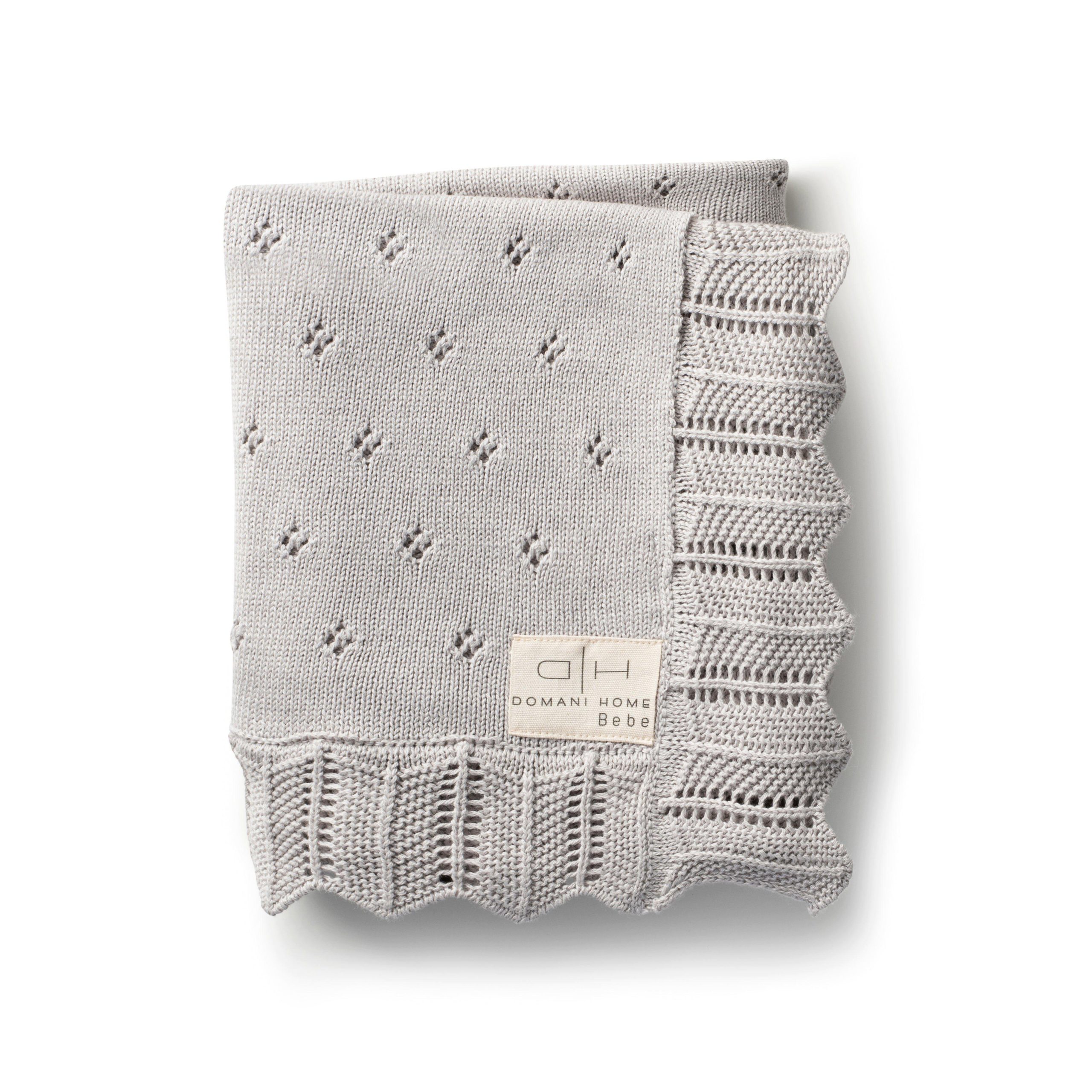 The Scalloped Pointelle Blanket is a beautifully crafted accessory designed to provide warmth and comfort for your little one. Made from soft, breathable fabric, this blanket features an intricate pointelle pattern that adds a touch of elegance, while the scalloped edges enhance its charming aesthetic.