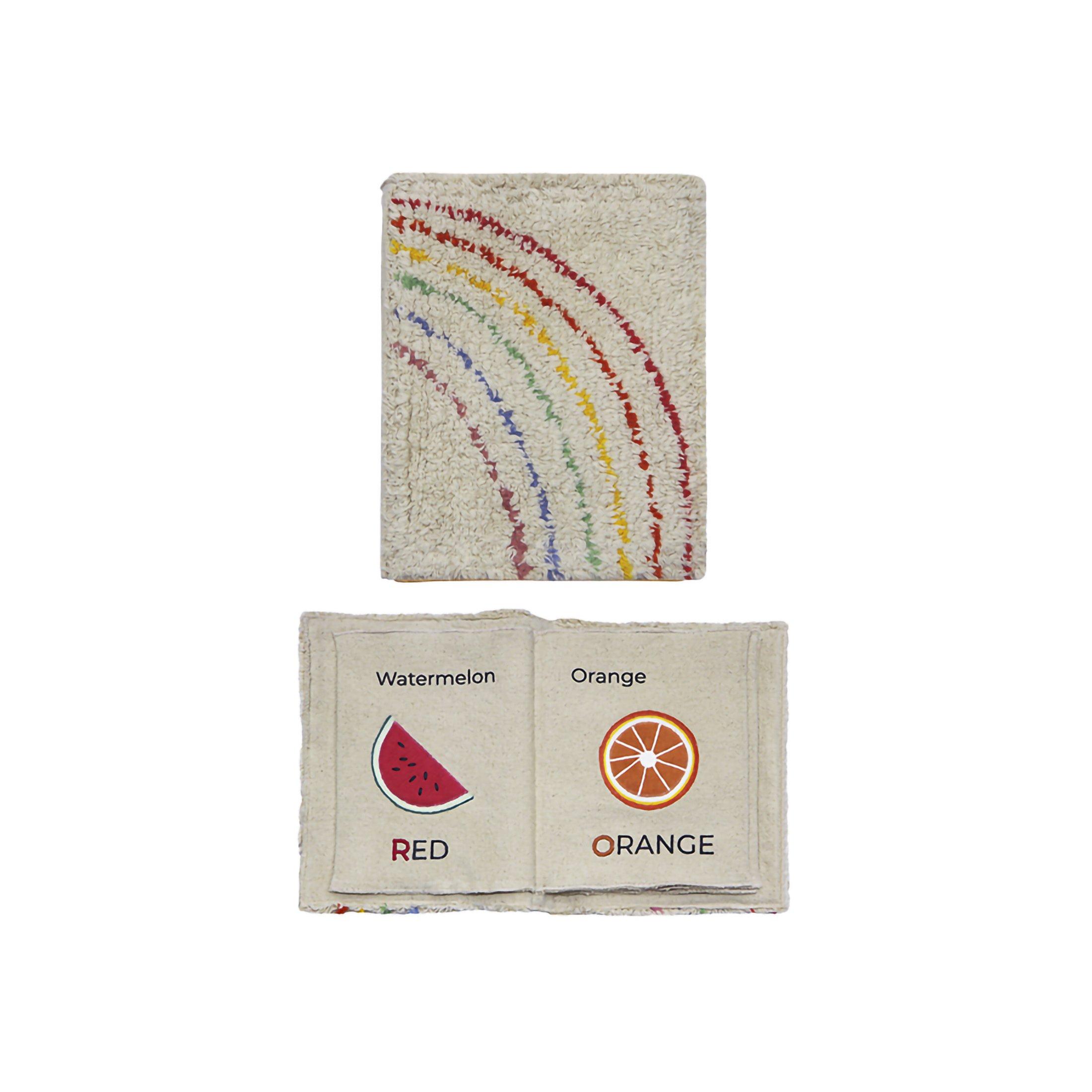 With a fluffy cover decorated with a rainbow, this sensorial book is a fun way to relate simple words with colors.