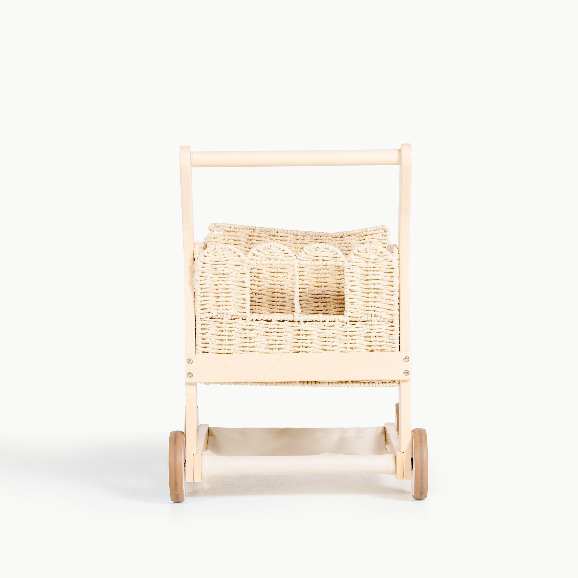 Features a basket seat for baby dolls or stuffed animals.