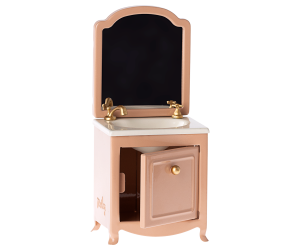 • A beautiful item for the royal bathroom in the Maileg mouse castle. It has a small closet under the sink and of course a mirror as well. The mirror is removable for extra decorating options!
