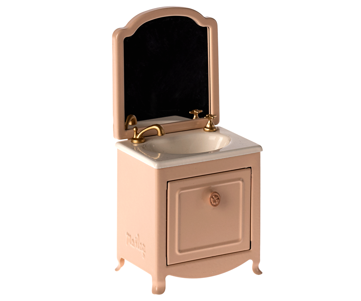 • A very essential item for the the bathroom in any mouse house. It has a small closet under the sink and of course a mirror as well. Add the Maileg toilet and bathtub to extent the play.