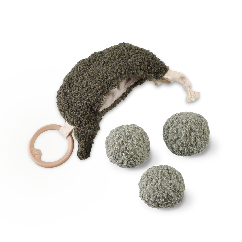 • Let your little one fall in love with their vegetables early on and let them enjoy this rattle pea! The tail end can be unbuttoned to hold a pacifier.