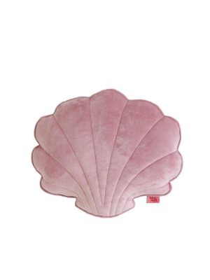 This super soft shell-shaped cushion is carefully sewn from light pink-colored high-quality velvet fabric.