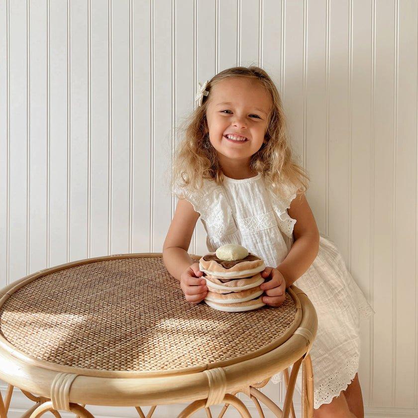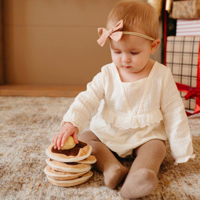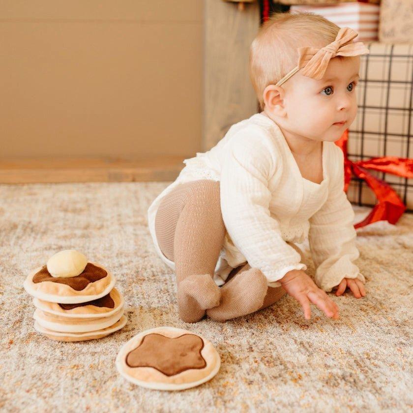 Let your little one learn to stack with our fun stacking pancakes! Each pancake is also a little bean bag and provide plenty of opportunities to learn throw and catch. (The butter squeaks too!)