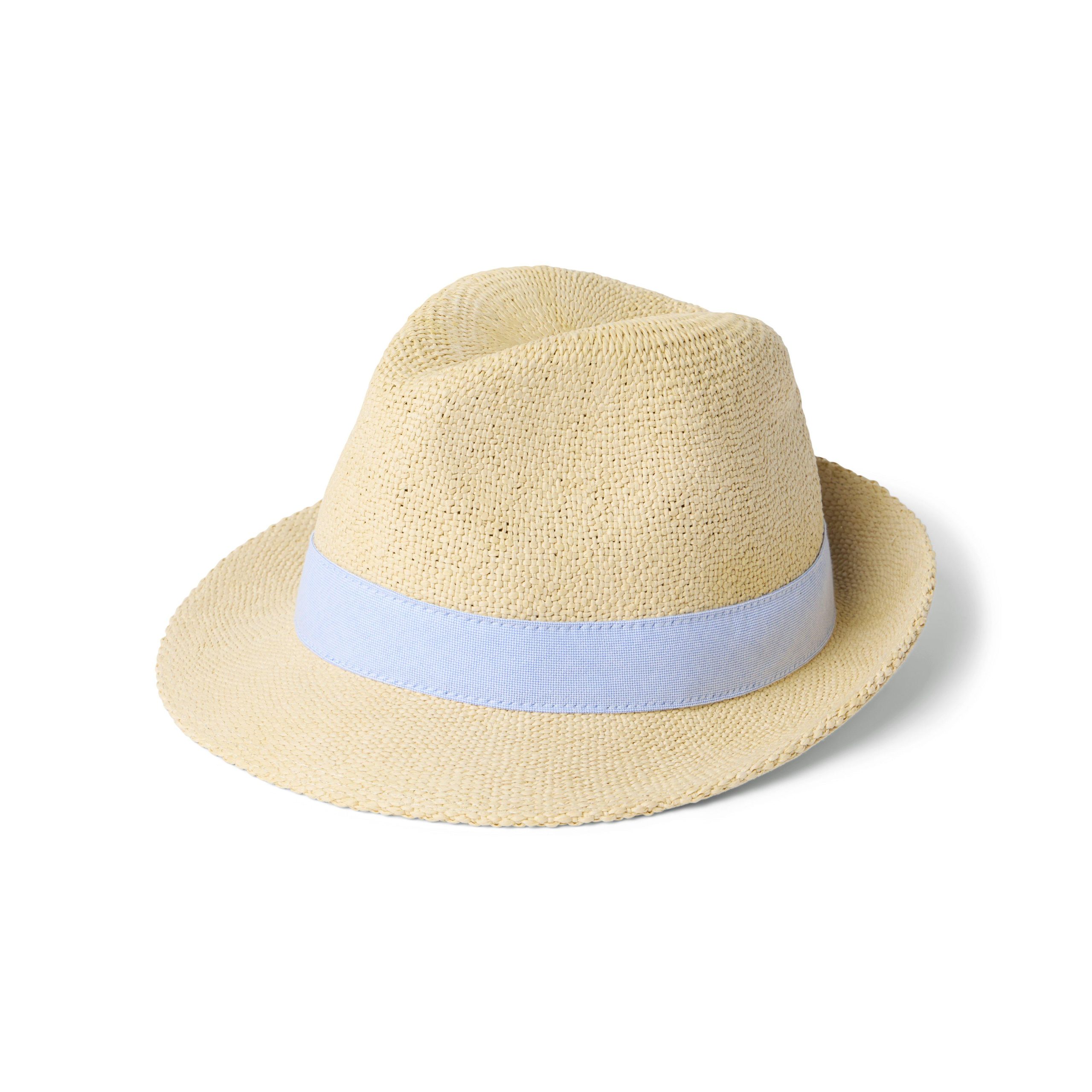 • For sunny occasions, our straw fedora is a must. With a ribbon detail, it’s a modern classic.