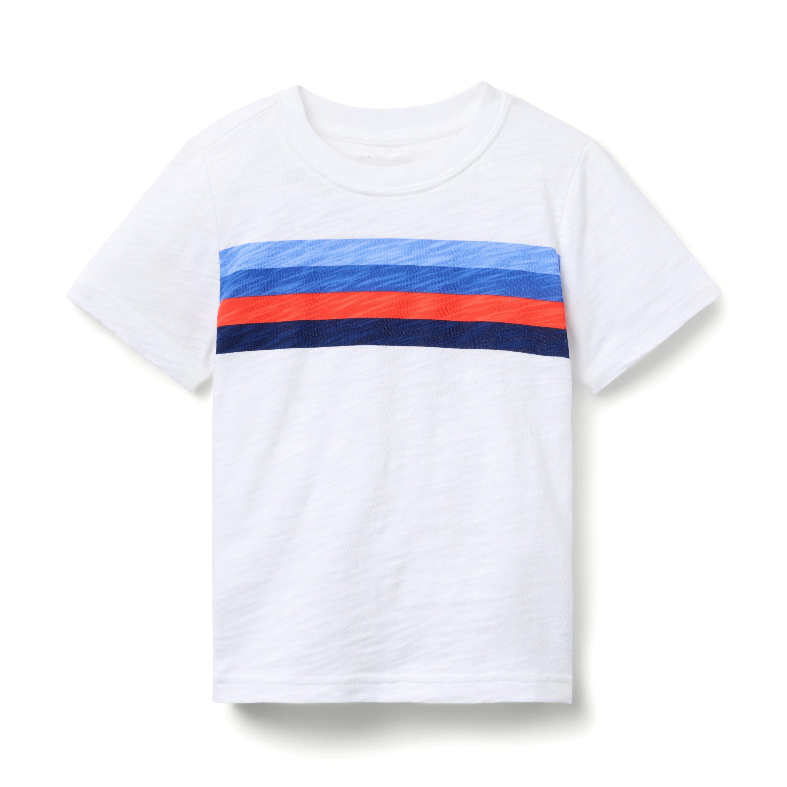 • Classic stripes are always on trend. Featuring a screenprinted graphic, our tee in pure cotton slub adds instant cool to every look.