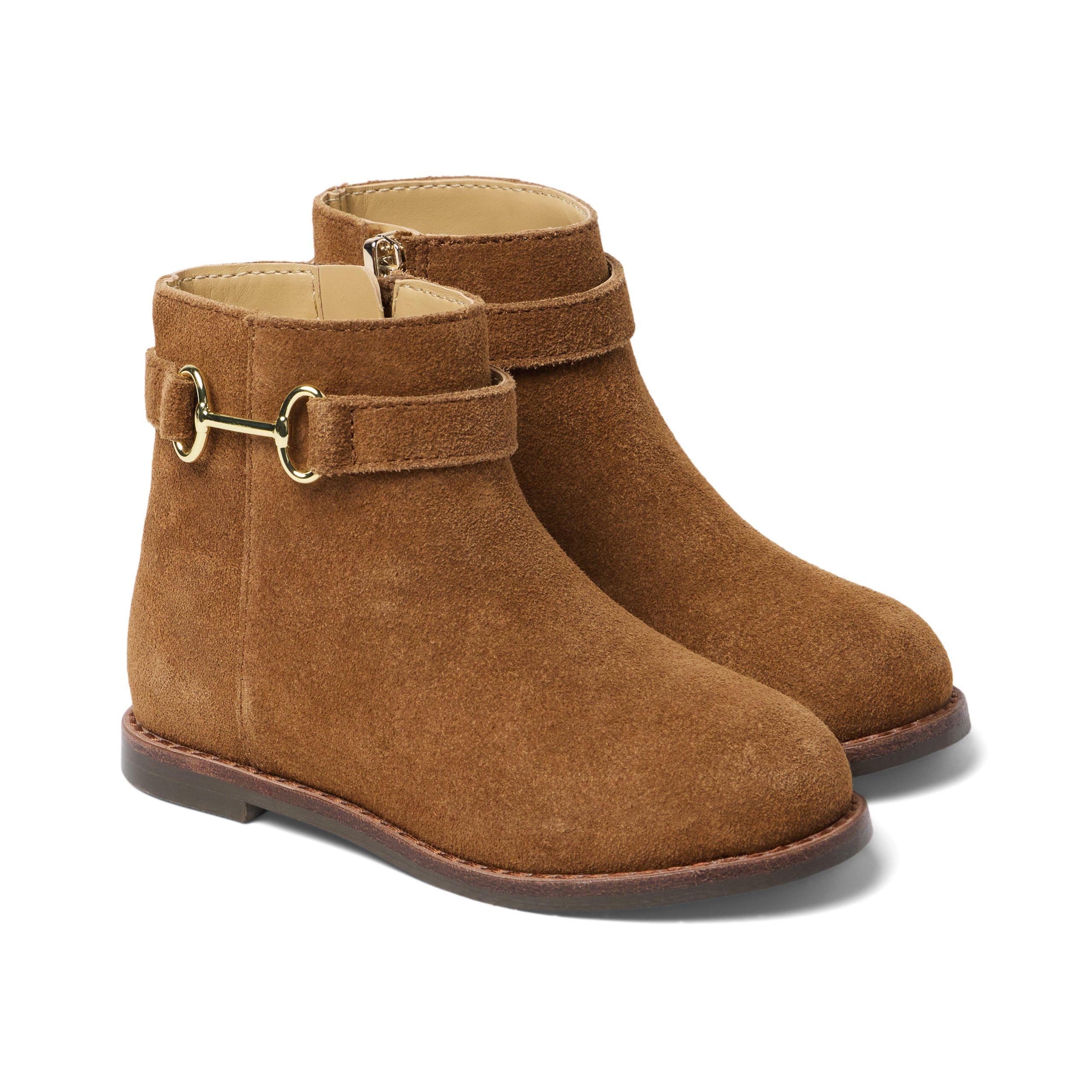 • Add equestrian style to their look with our bootie featuring a bridle bit detail at the ankle. In genuine suede leather with a side zip closure.