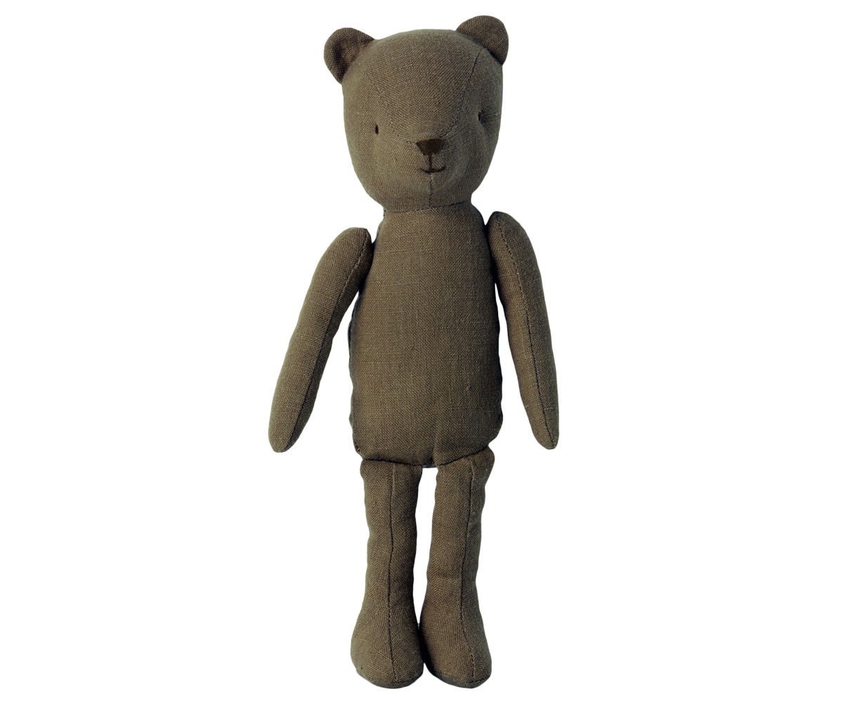 The Teddy bear family is a sweet collection of 3 different sizes of Teddy bears. They are made of soft linen and their shoulders are articulated so they can rotate and stay in place. The Teddy Family has a vintage look that will bring back dozens the memories. Dad is a Dusty Green color.