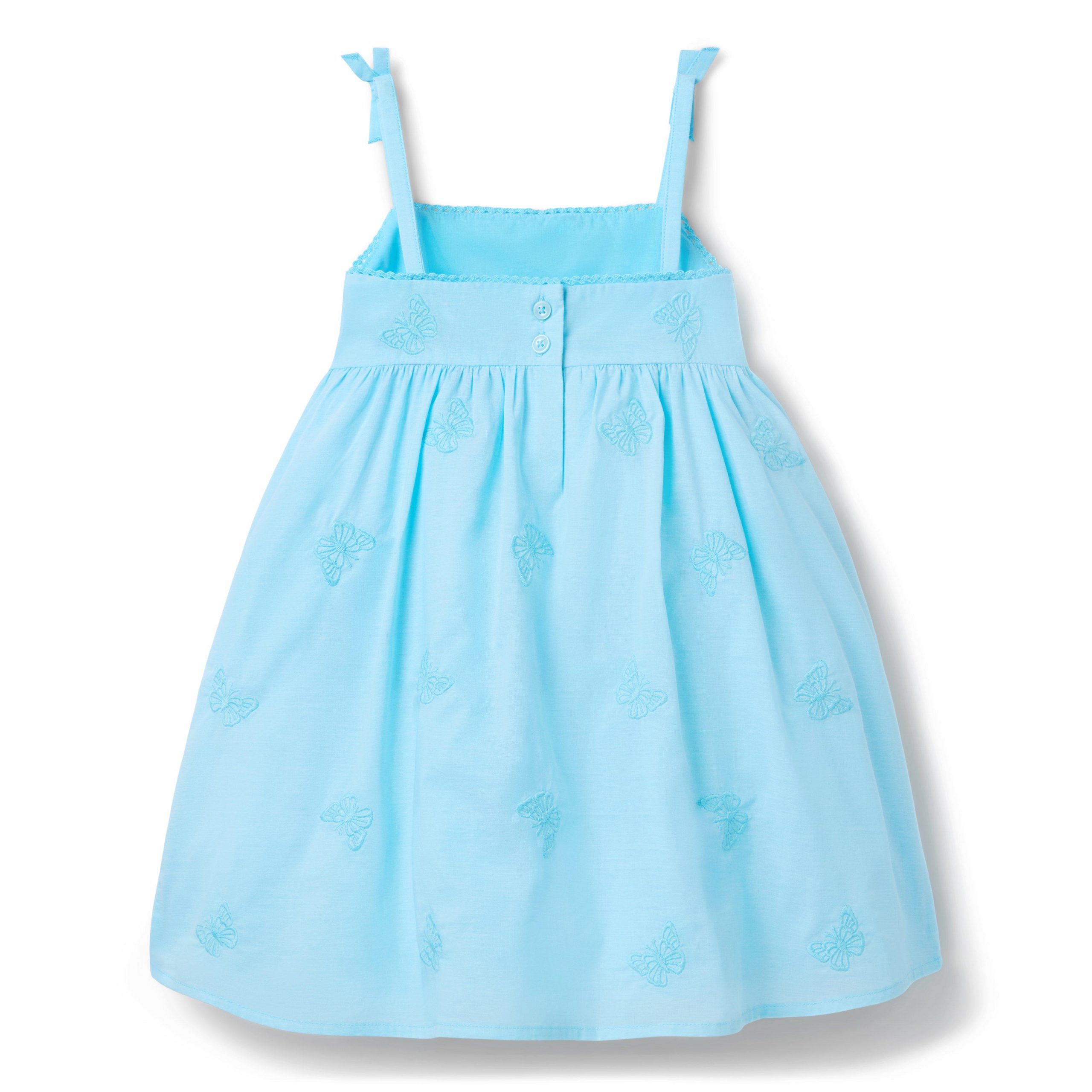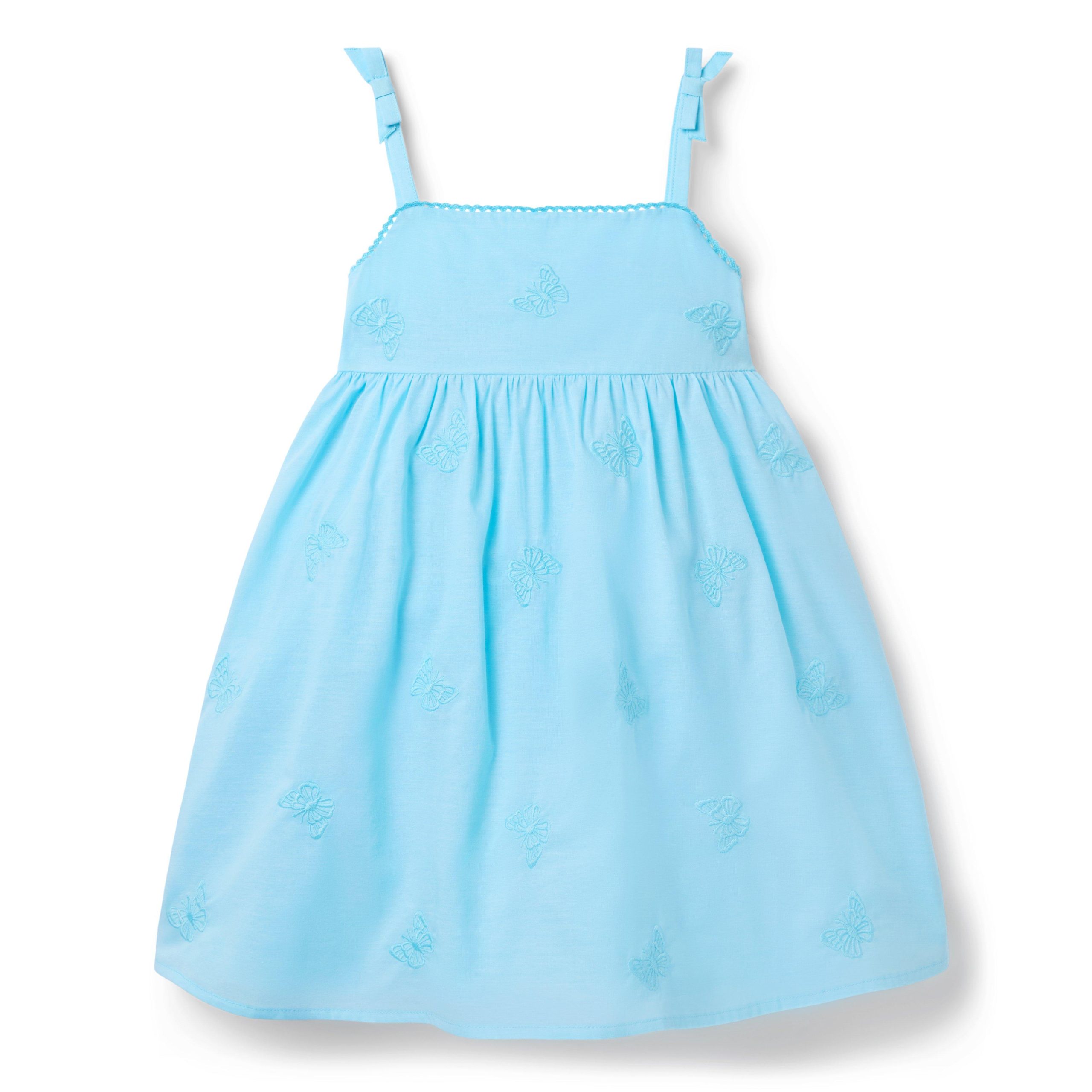 • Dreamy details make this pure cotton dress an instant favorite. With allover embroidered butterflies, picot trim and bows at the straps.