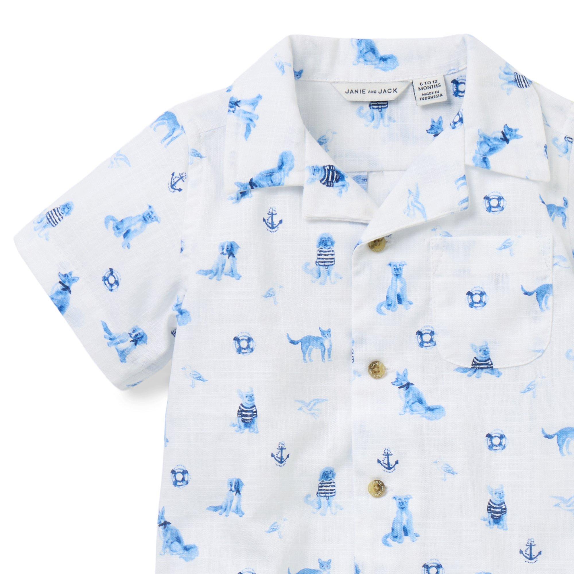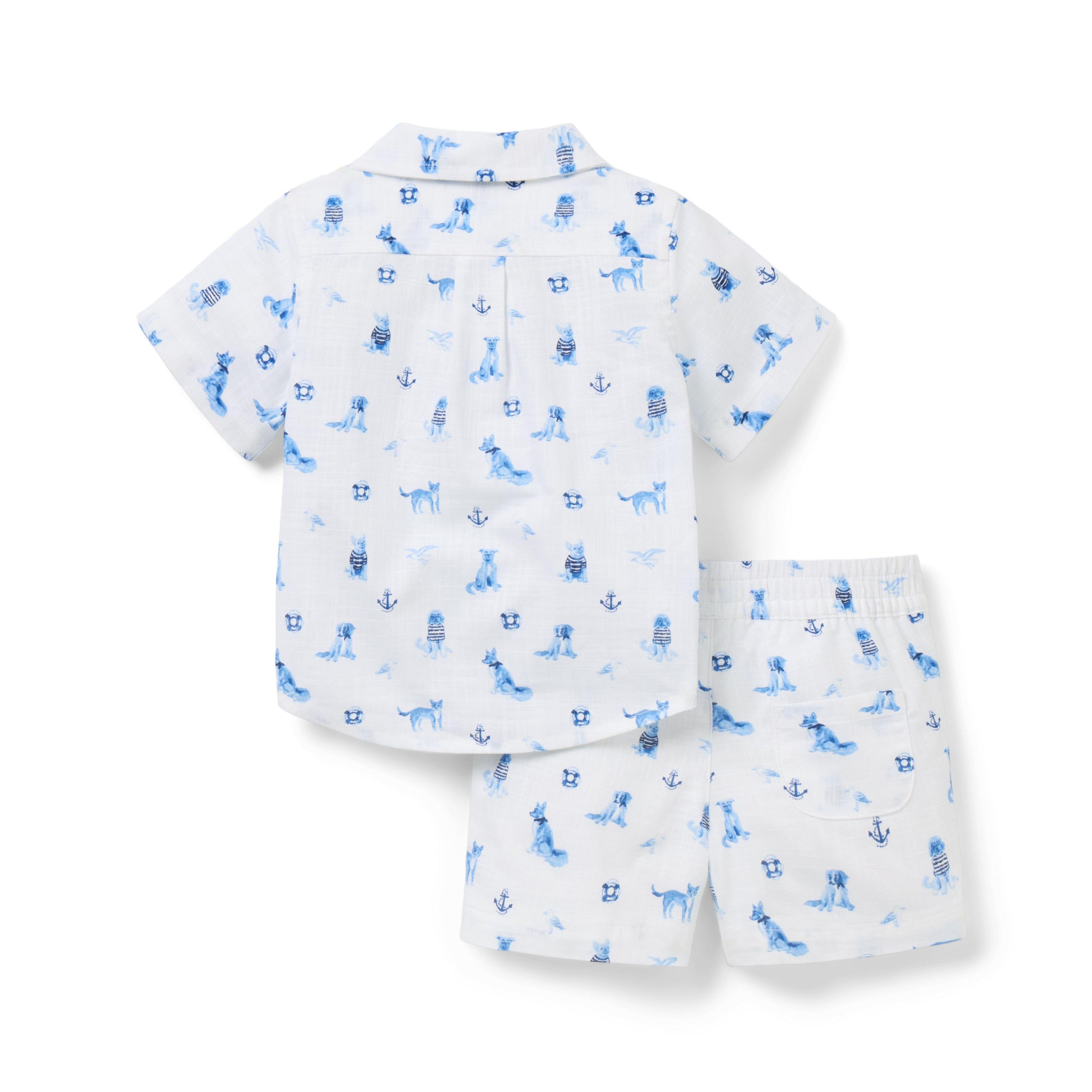 • Our breezy cotton short set is the perfect match for baby’s sunny first moments. In a nautical-inspired dog print with a little chest pocket, just because.