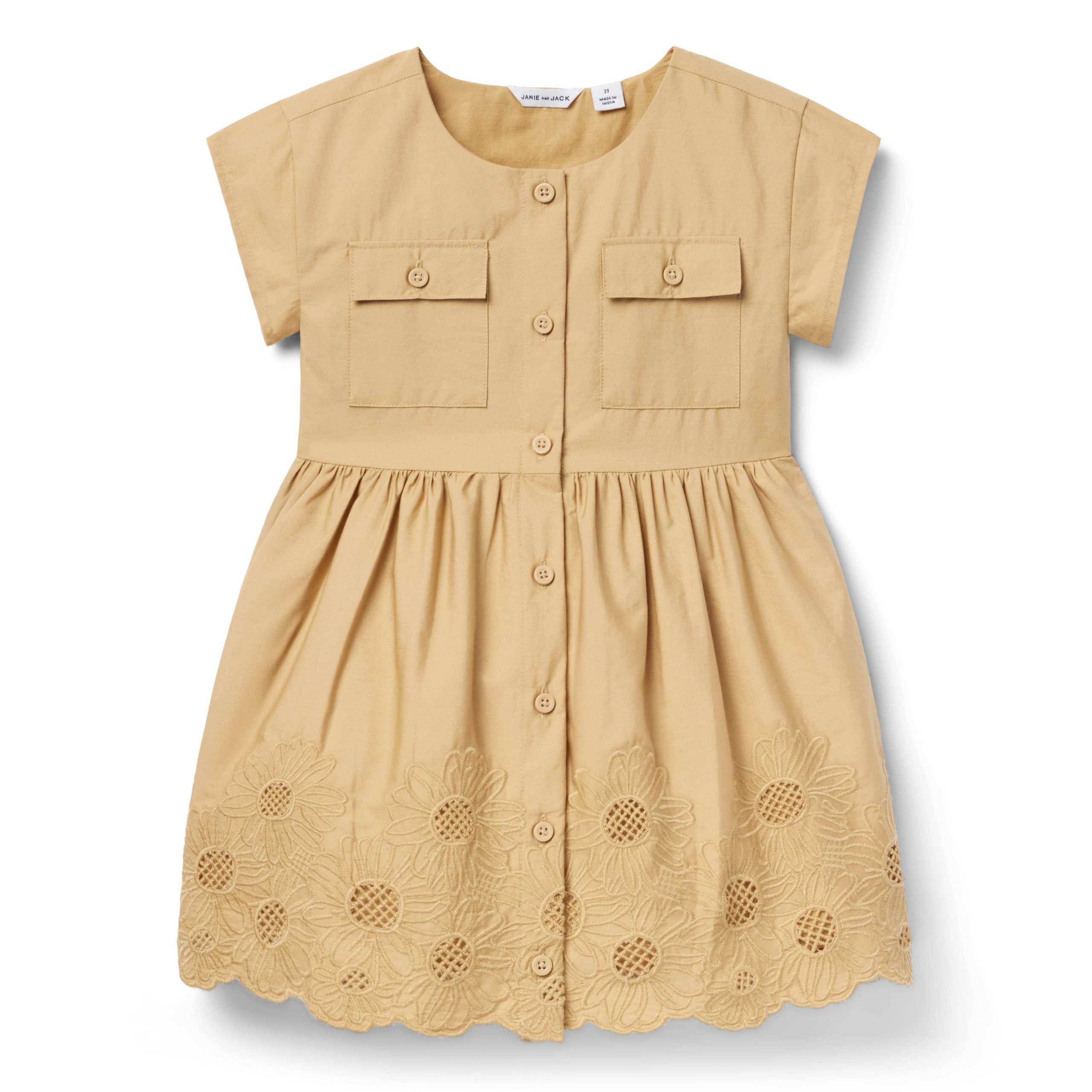 • A floral twist for our adventure-ready cargo dress. In pure cotton poplin with cap sleeves, chest pockets and an embroidered floral hem, it’s perfect for fashion-forward getaways or any day.