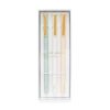 One adjustable shelf (in two parts), two handy hooks (one inside each door), two cable holes and two wall attachment points.