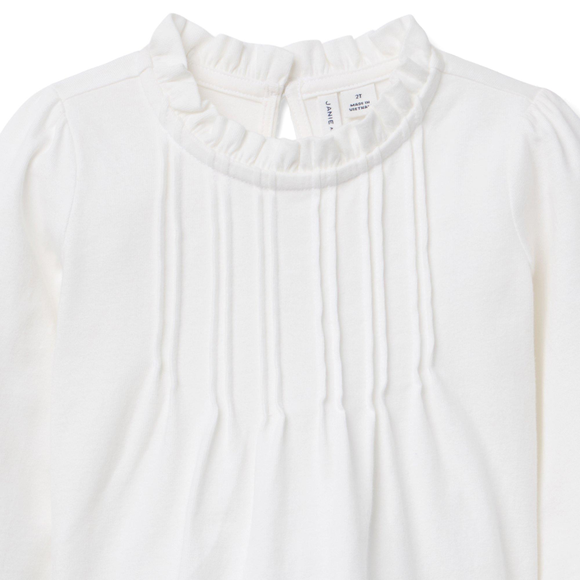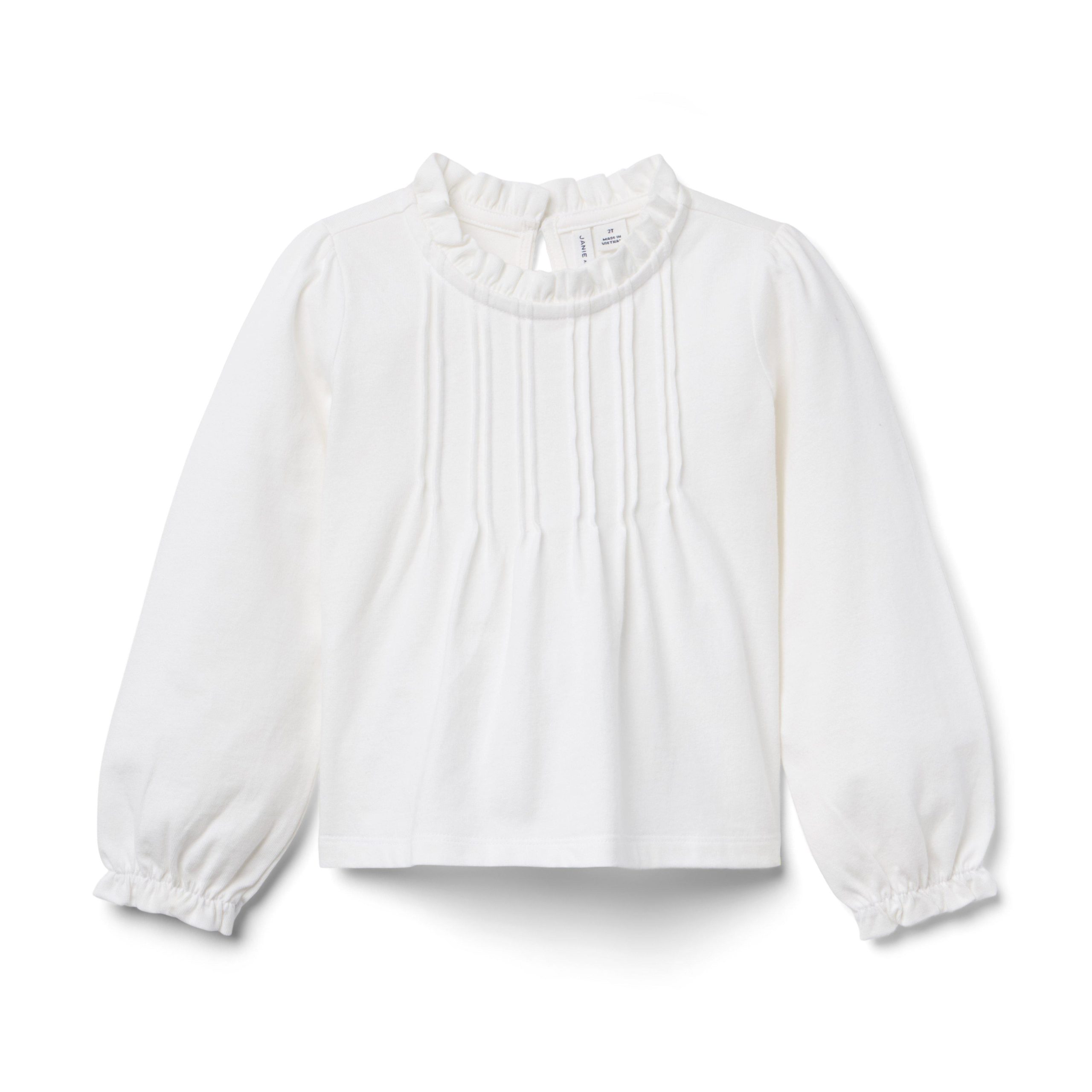 • A not-so-basic top to pair with all their favorites. With pintuck details and ruffles at the neck and sleeve cuffs.