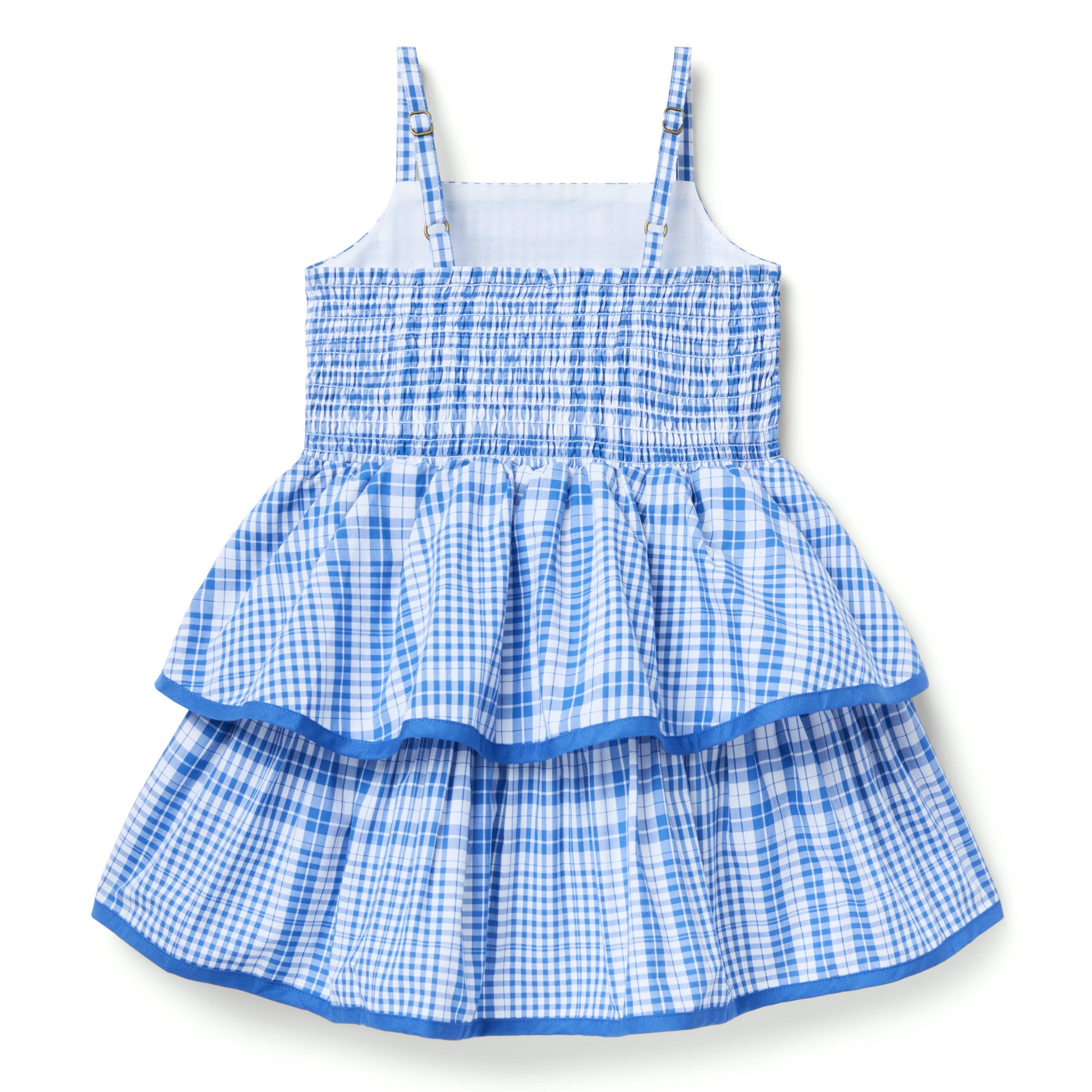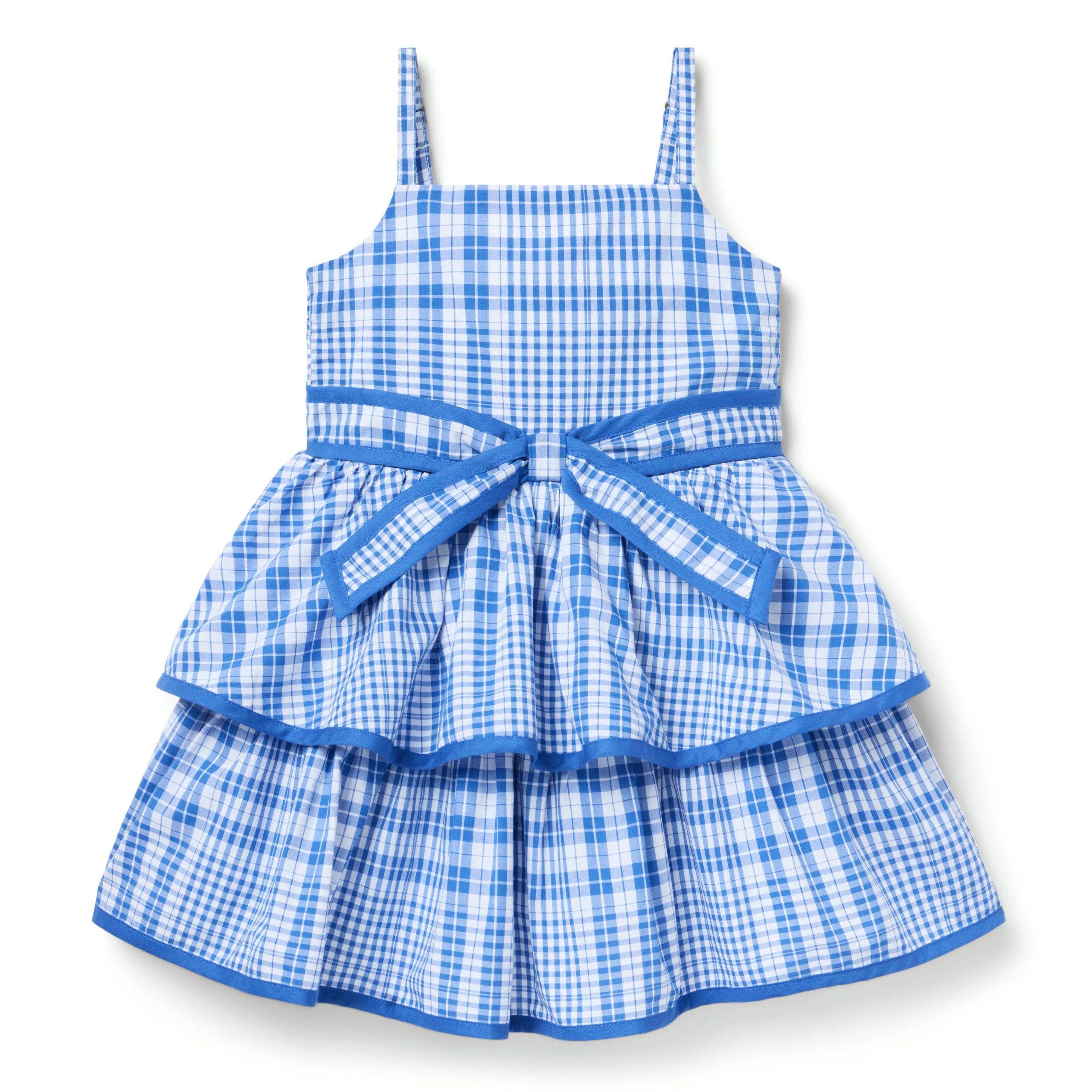 • Classic plaid and rows of ruffles? Yes and yes. Designed in pure cotton poplin, our tiered dress makes a stylish statement with contrast trim, a tie waist detail and smocking at the back.