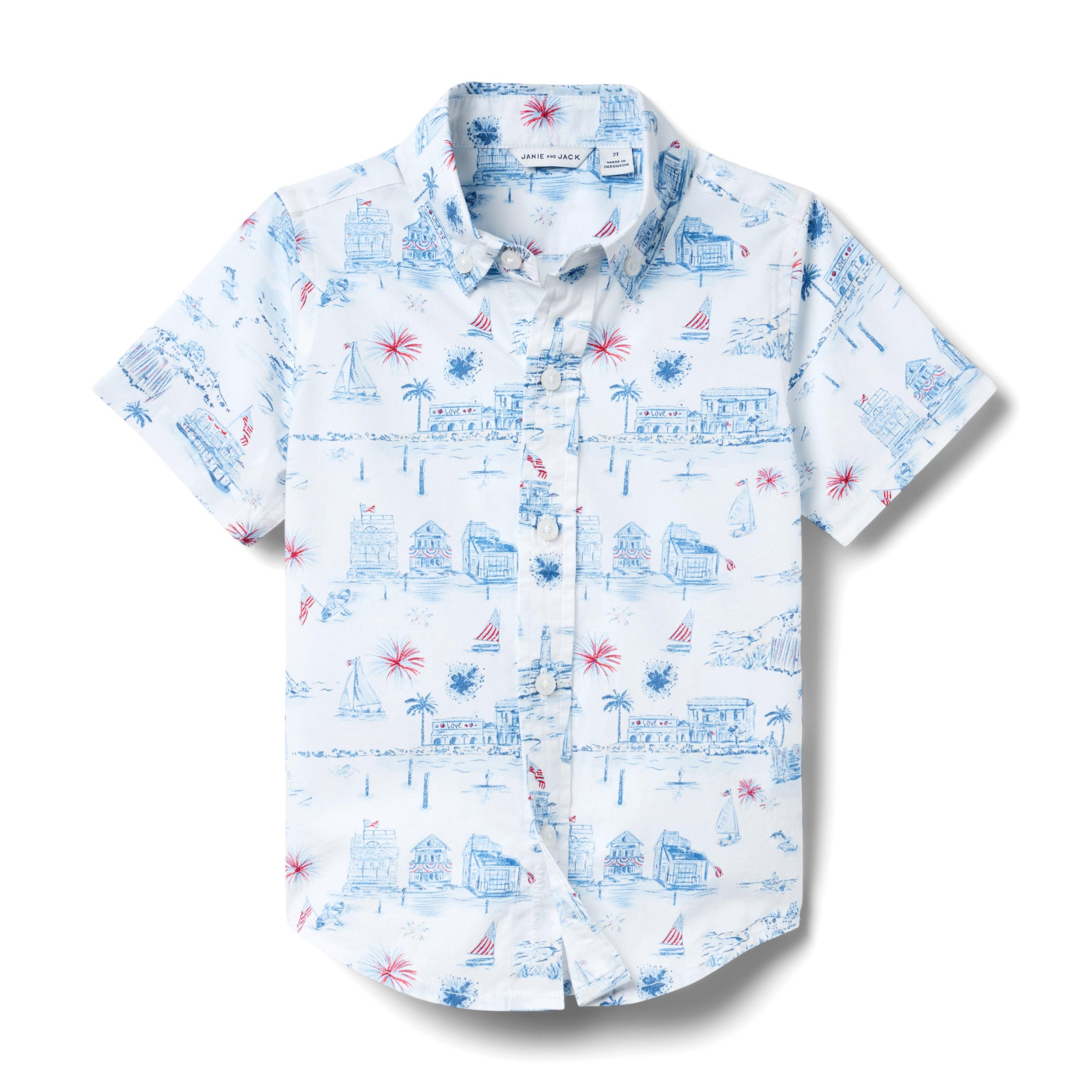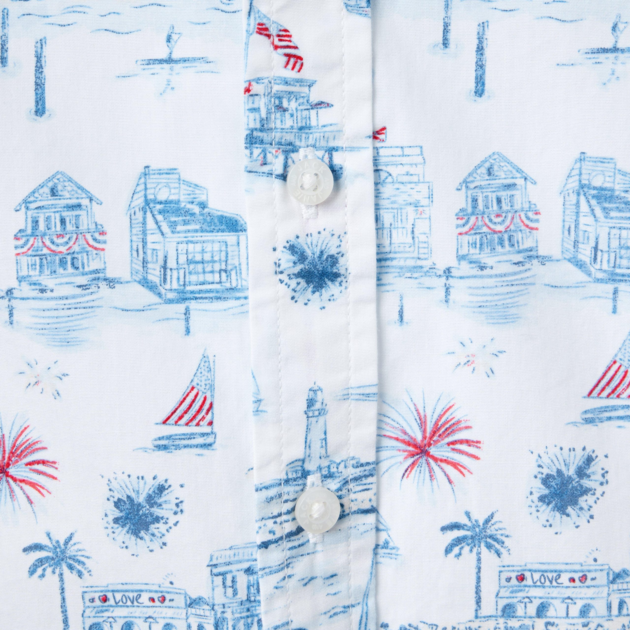 • A salute to sunny day style with our crisp cotton poplin shirt. Featuring an allover Americana toile and tailored details to love, like collar point buttons.