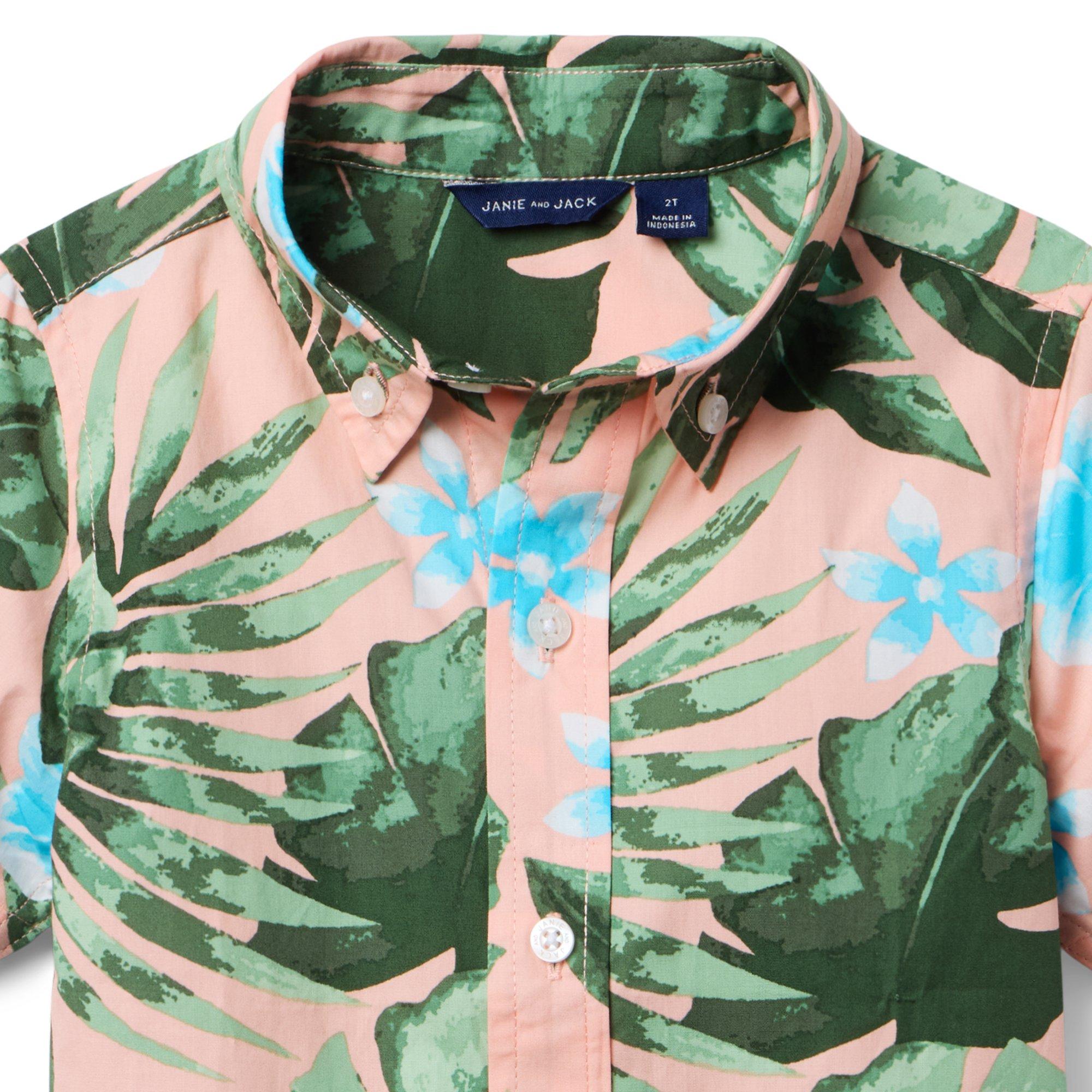 • Our lightweight cotton poplin shirt is made for sunny days. With an allover palm print and tailored details like collar point buttons.