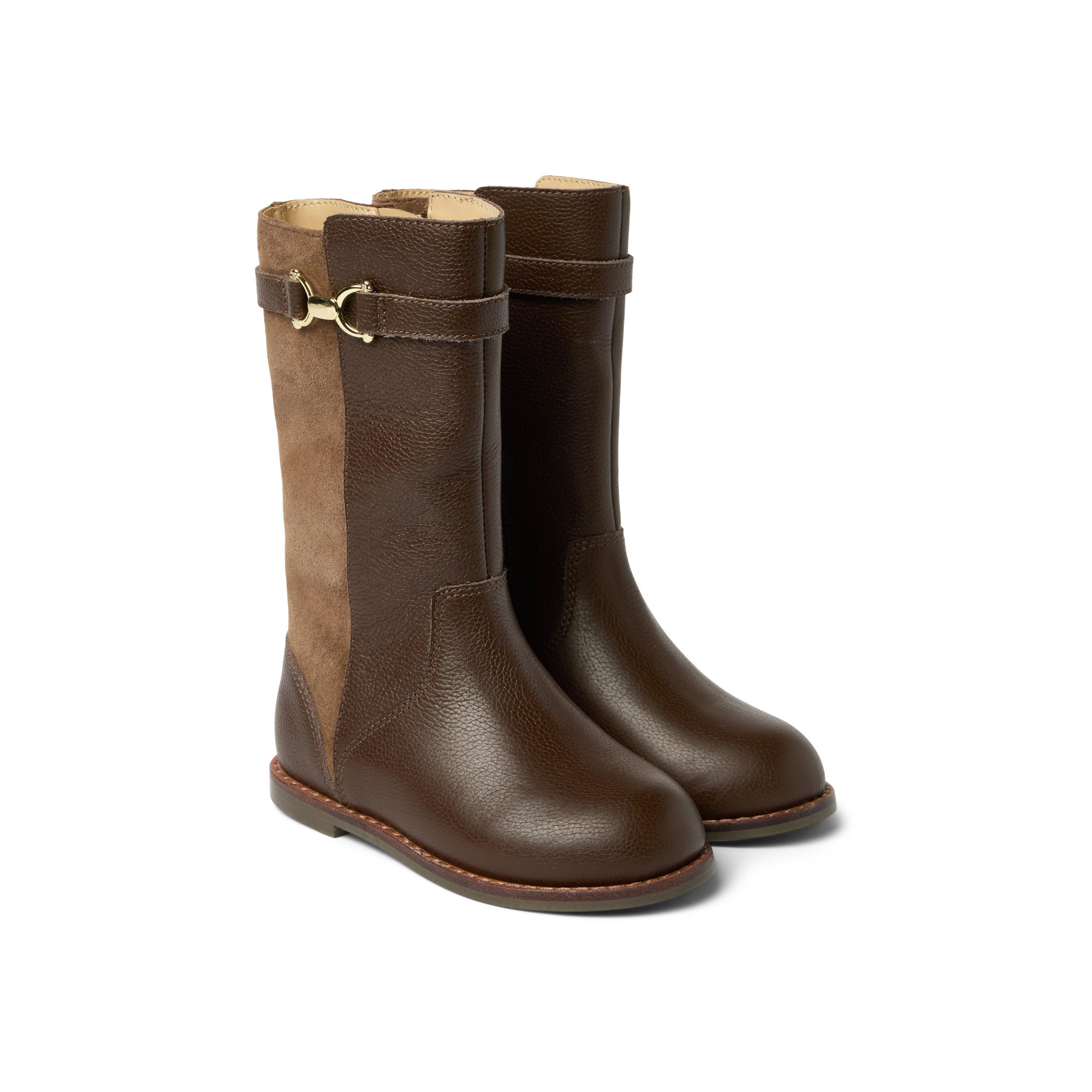 • Equestrian style wins all the blue ribbons. Our genuine leather and suede riding boot features a bridle bit detail and easy side zip.