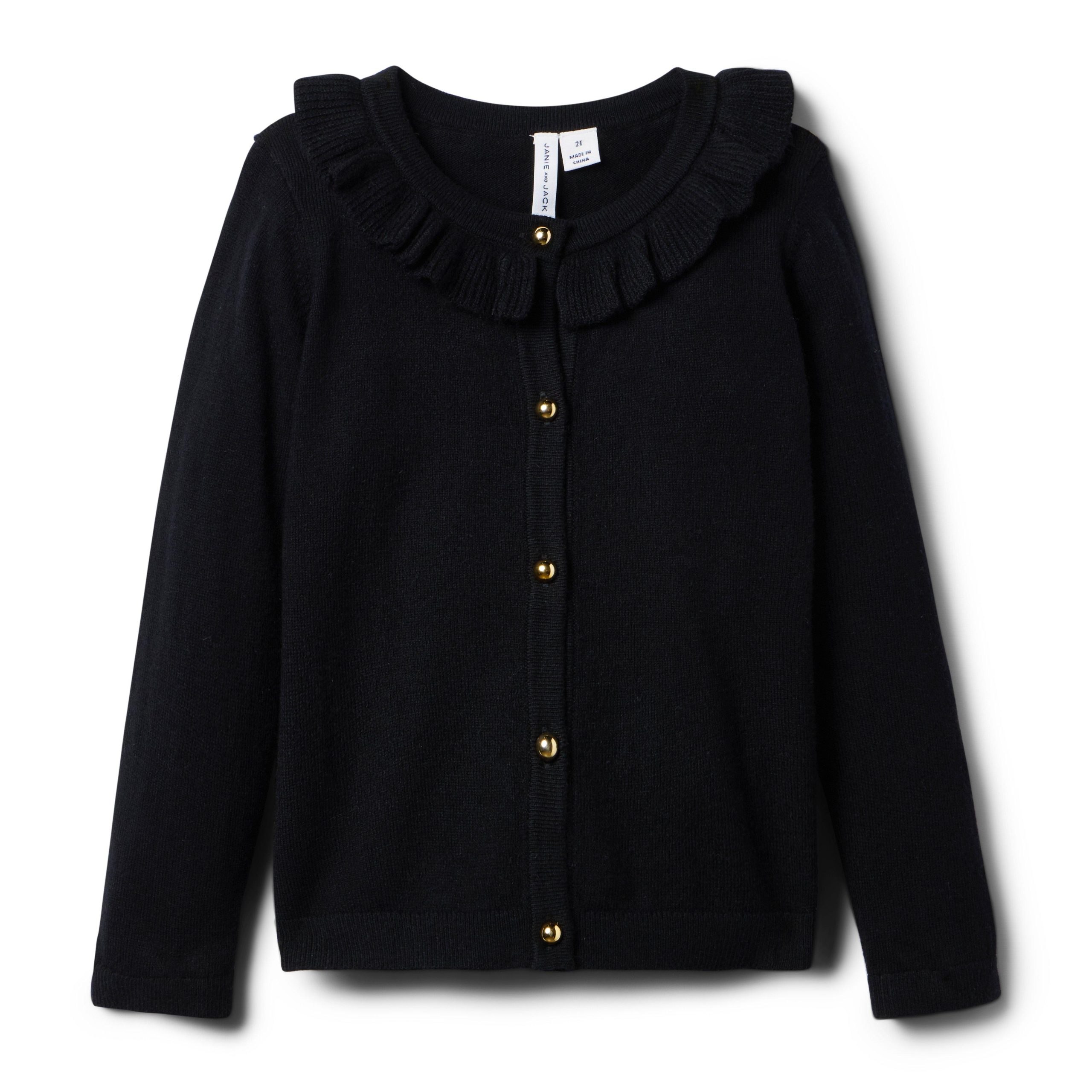 • A goes-with-everything classic to add to their wardrobe. So soft and detailed with a ruffle collar and gold-tone buttons.