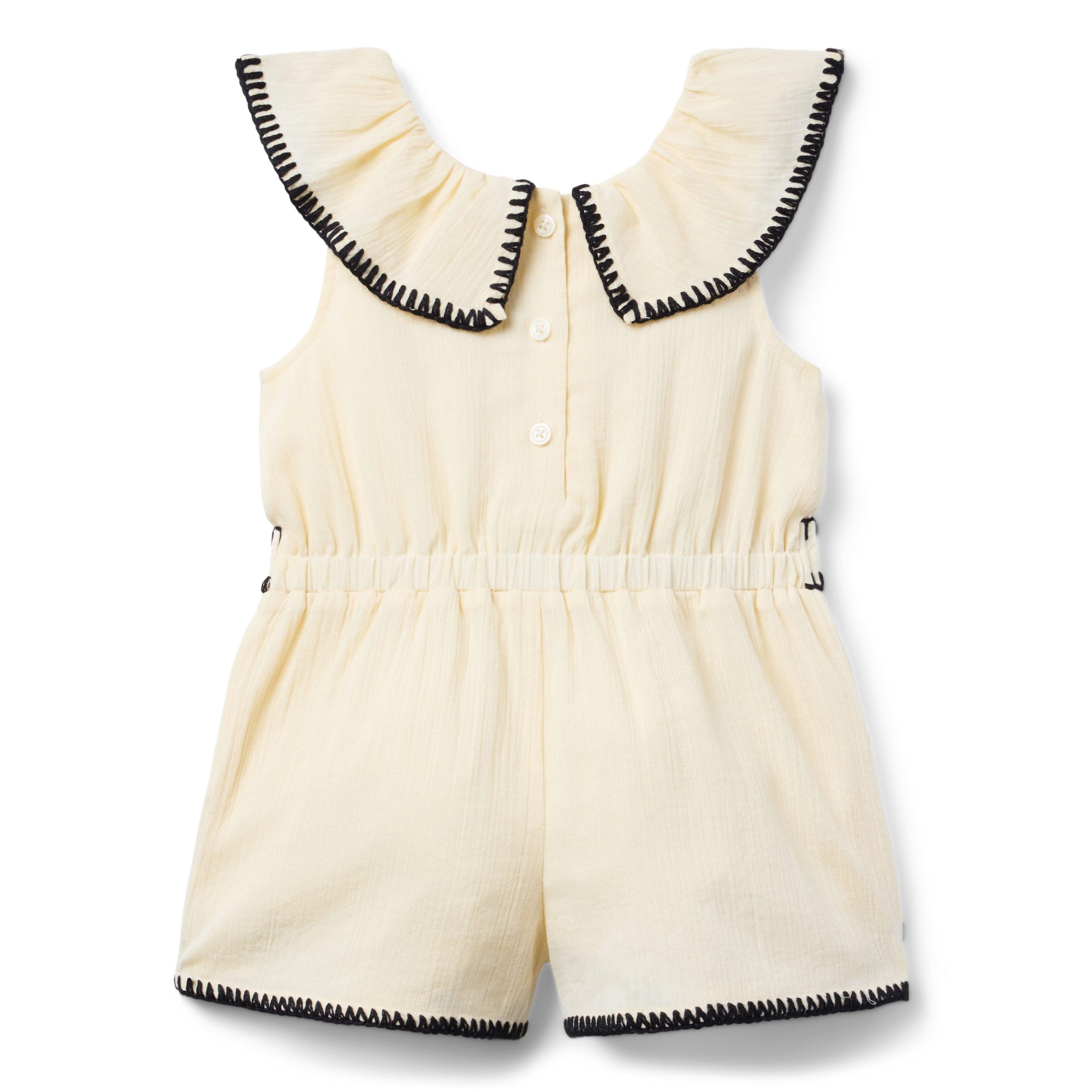 • For effortless style, reach for our romper in breezy cotton gauze. With a ruffle collar, stitched trim and a belt detail, it’s perfect for every adventure. With pockets for the little things, of course.