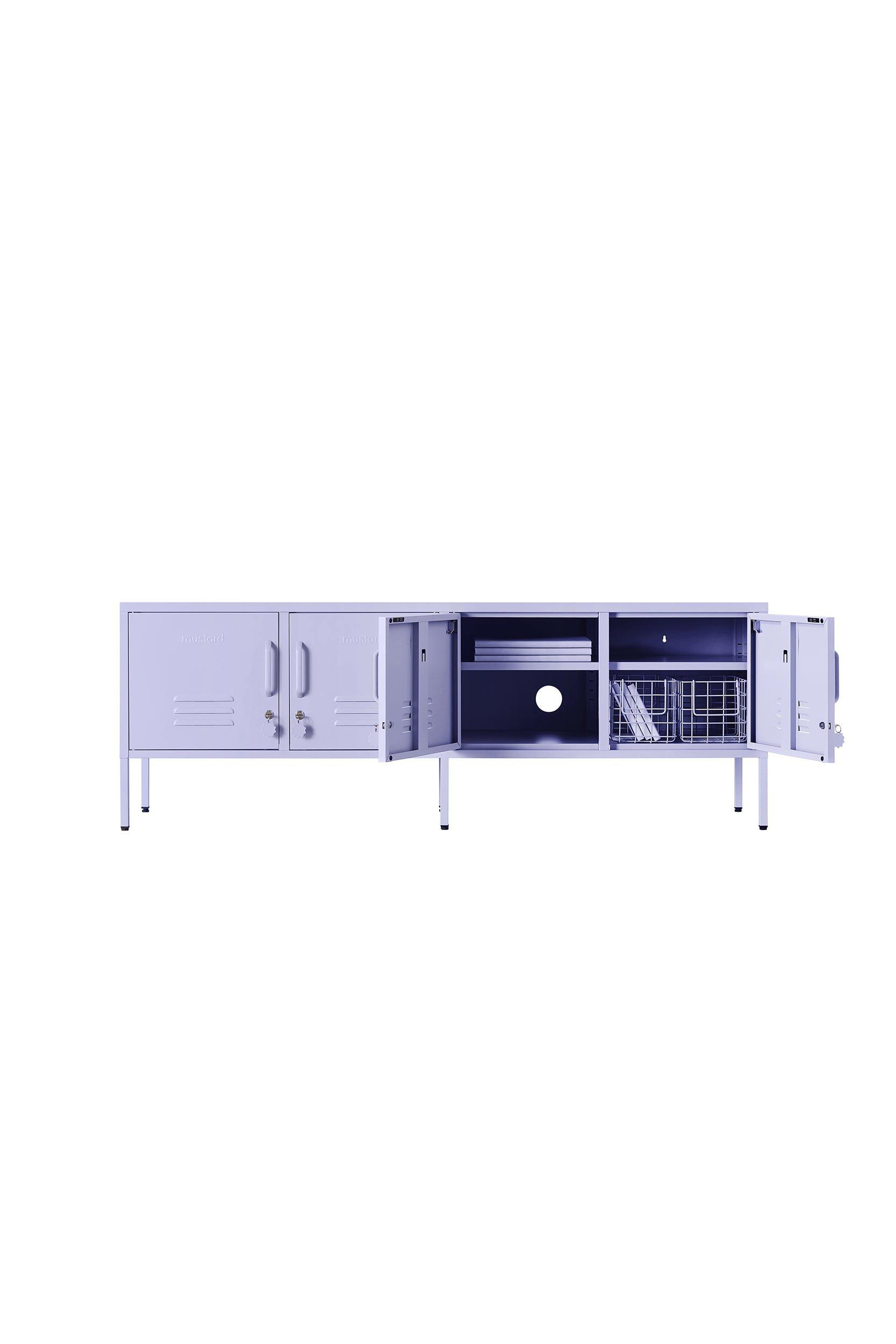 • Meet our long + lean four door locker. She’s the ultimate multitasker and your one-stop for storage, whether you use her as a TV unit, entertainment hub, shoe organiser or at the foot of your bed. With two cable holes to keep things tidy and a lock on every door, she’s a console with confidence. It’s time to set the Standard!