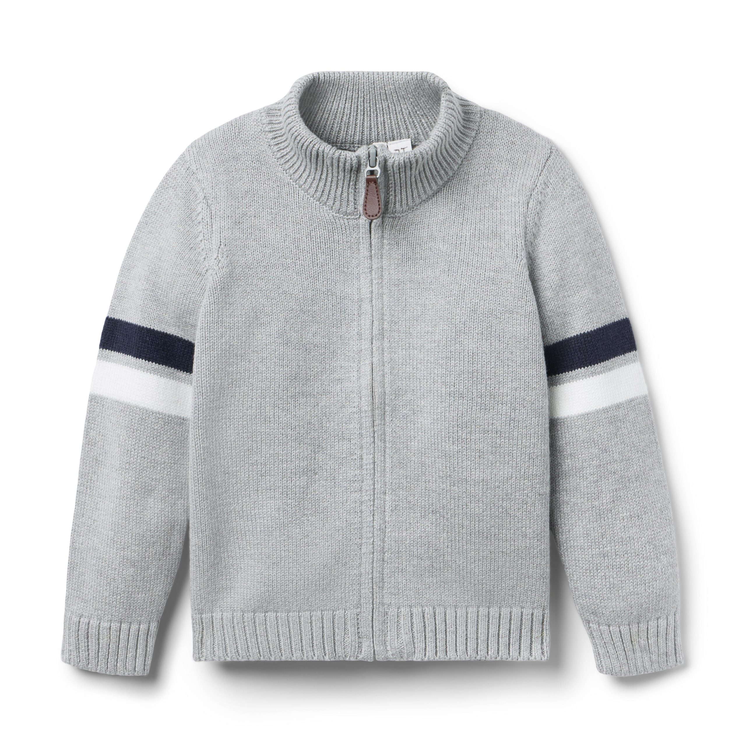 • A cozy knit layer to throw on and go. Our mock neck sweater jacket features intarsia-knit stripes, ribbed details and an effortless zip front.