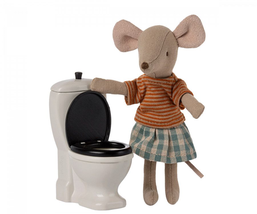 Complete your bathroom with our Mouse Toilet. It is beautifully made in an off-white color with a black seat. The seat can open and close, and the pull function of the handle makes it very realistic and playful! Fitted for our little Mice.