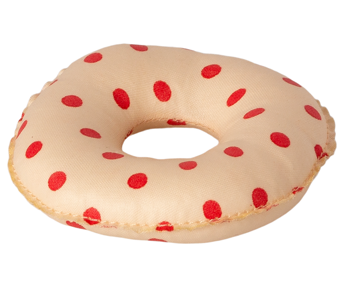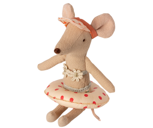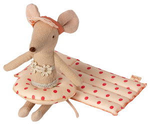 Vacation time! A tube made in coated fabric for an authentic look. It is not waterproof, so only play on dry ground… only in your imagination, it can float on water. Made for little mice, but can fit up to Mom and Dad size with a little squeeze.