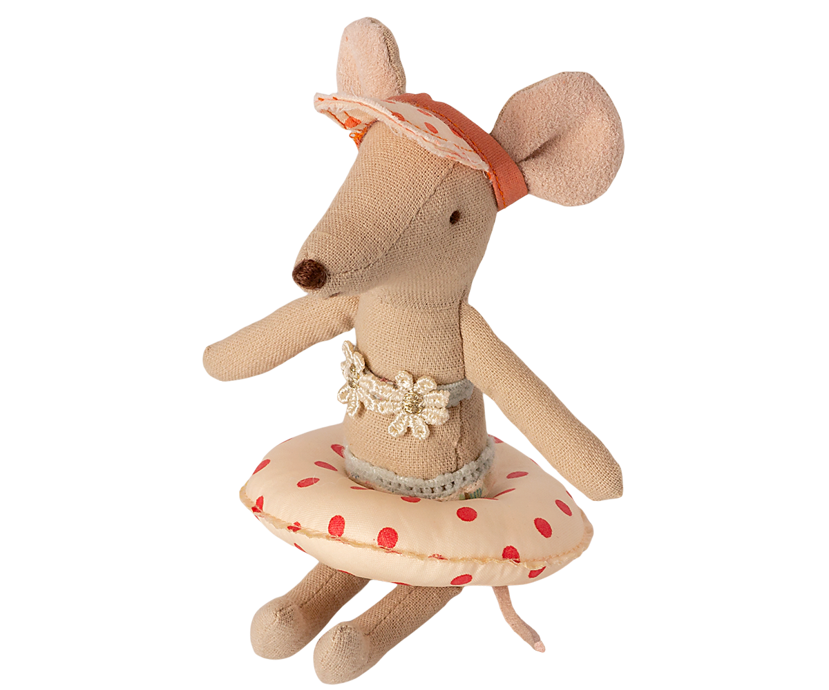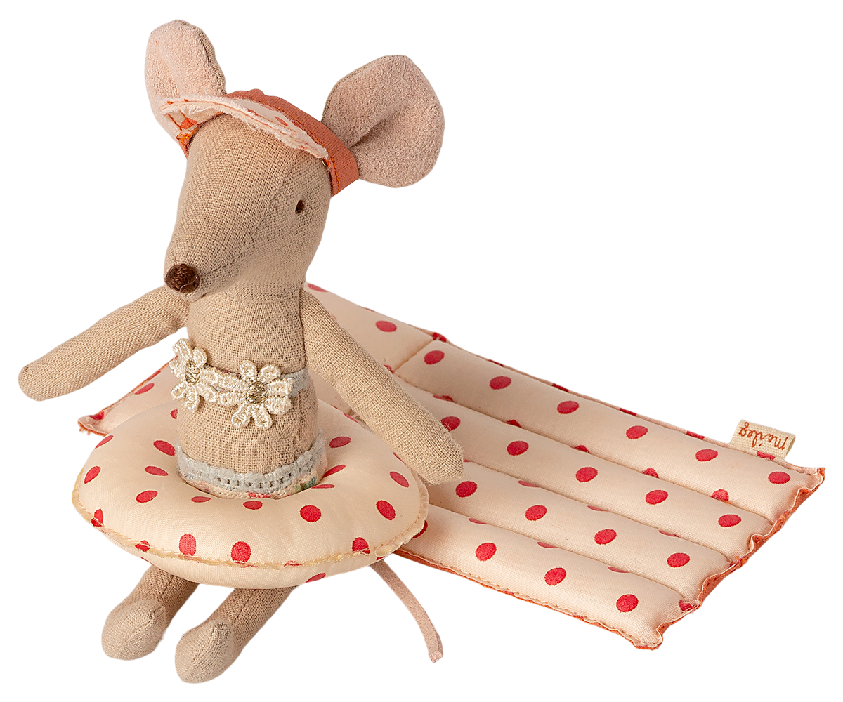 Vacation time! A tube made in coated fabric for an authentic look. It is not waterproof, so only play on dry ground… only in your imagination, it can float on water. Made for little mice, but can fit up to Mom and Dad size with a little squeeze.