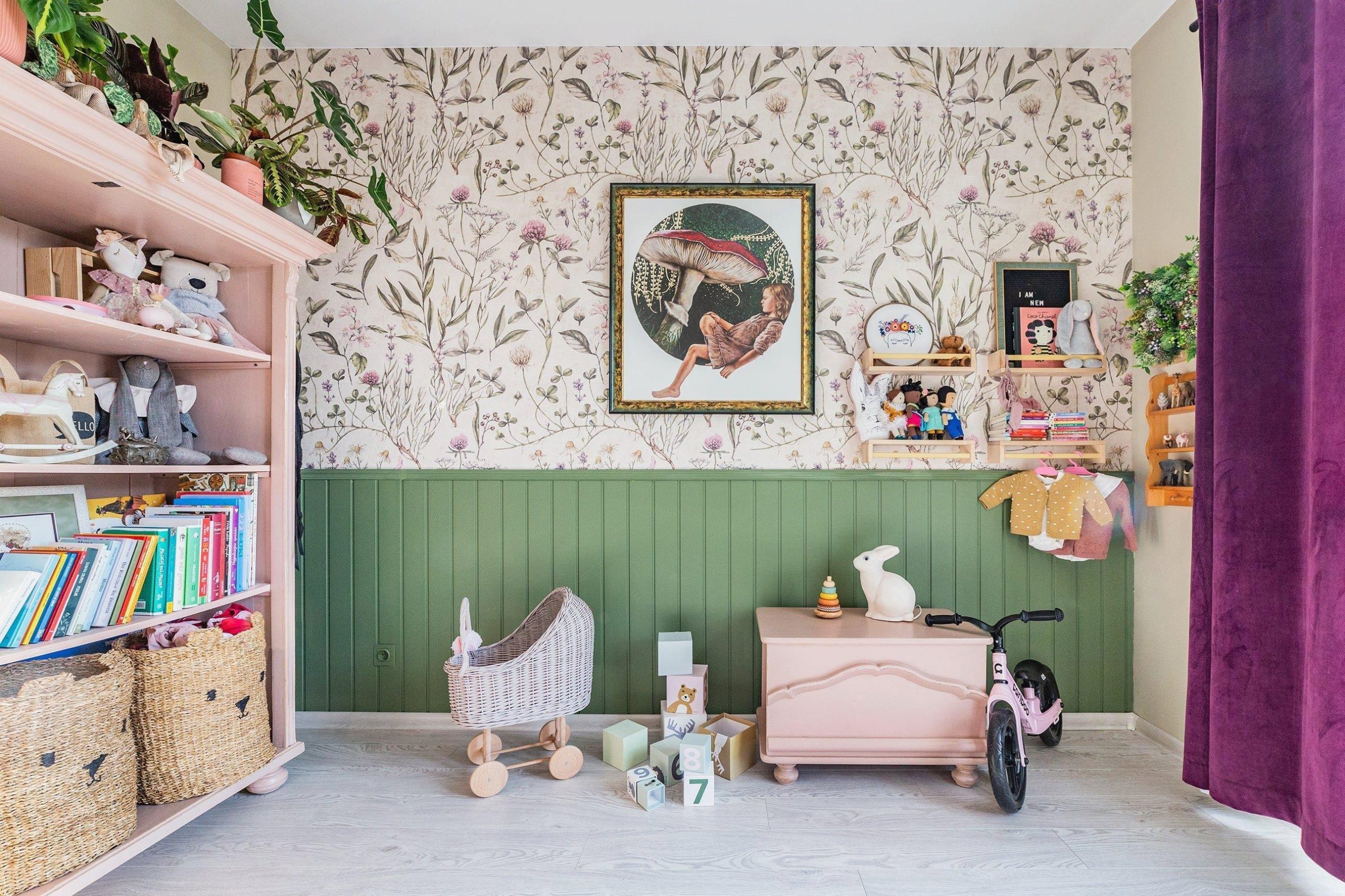 This lively and aesthetic wallpaper is a perfect addition to any kids bedroom or nursery decor.