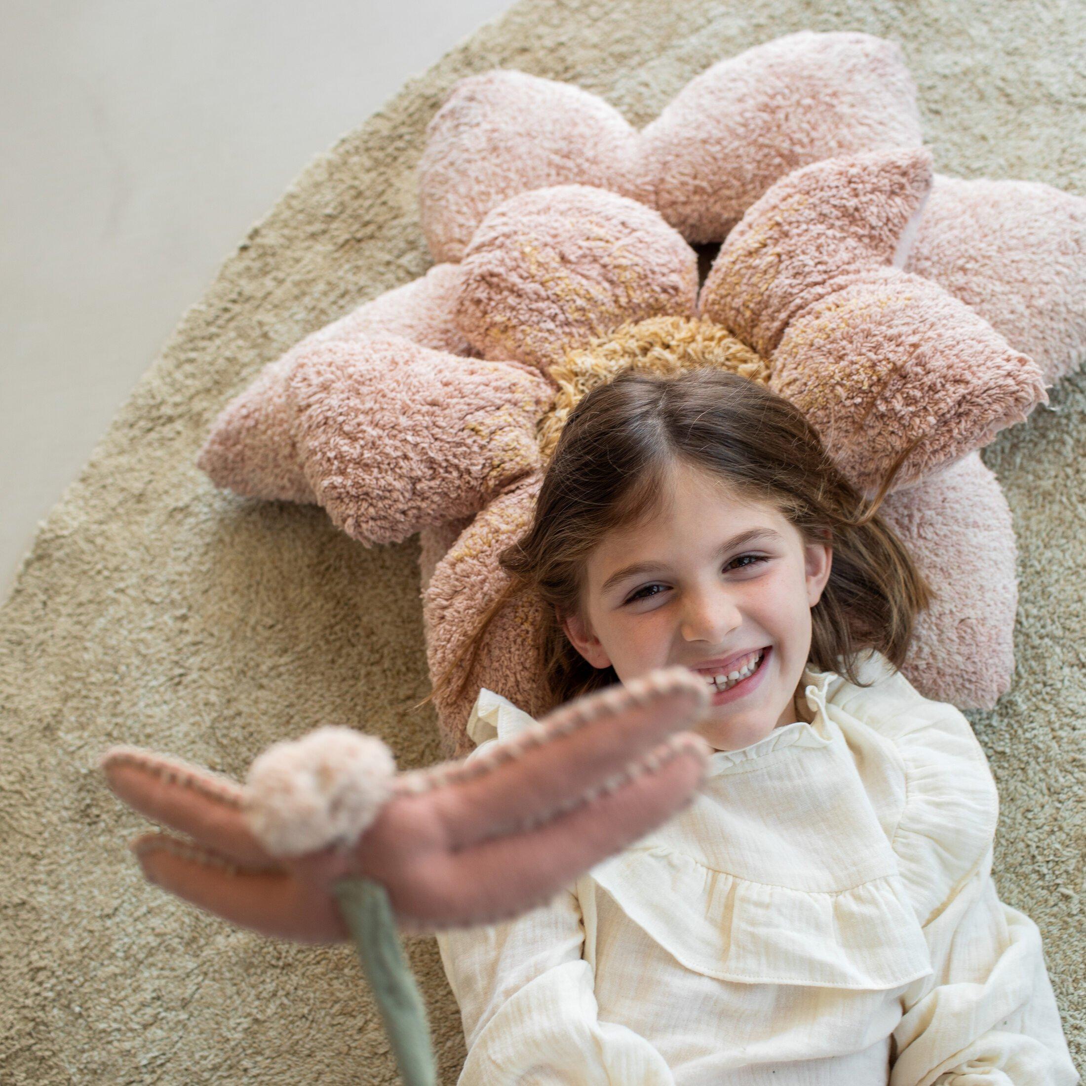 Shaped as a Water Lily, this puffy rug is made in shades of Olive and Honey colors mixed in different proportions, inspired by the ever changing color nuances of nature. The rug has rounded edges simulating the floating Water Lily leaf, and the decorative pink flower cushion is made of two separate cushions, easily removable from the rug through a cord system, and a discreet opening in the rug. The cushions can be used separately.