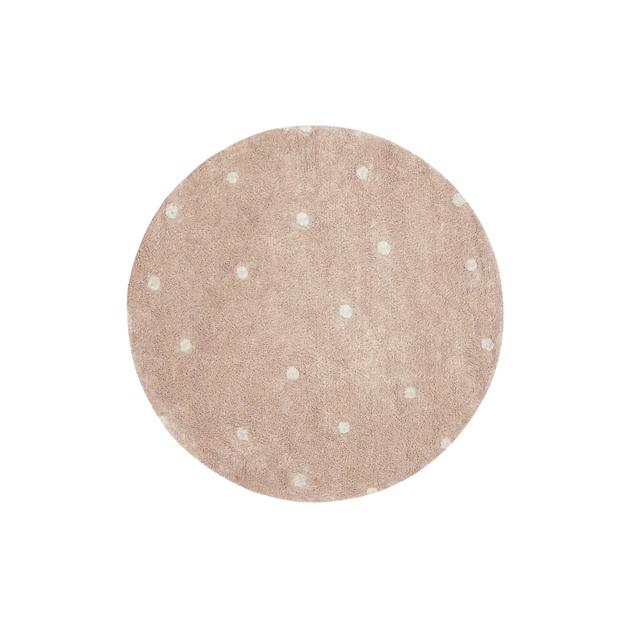 A soft, plush cotton rug with a dots design that never goes out of style. Tufted in extra high-density, soft cotton pile, the Round Dot rug is available in three beautiful color combinations: Chestnut with Rose dots, Rose with Natural dots and Blue Sage with Vintage Blue dots.