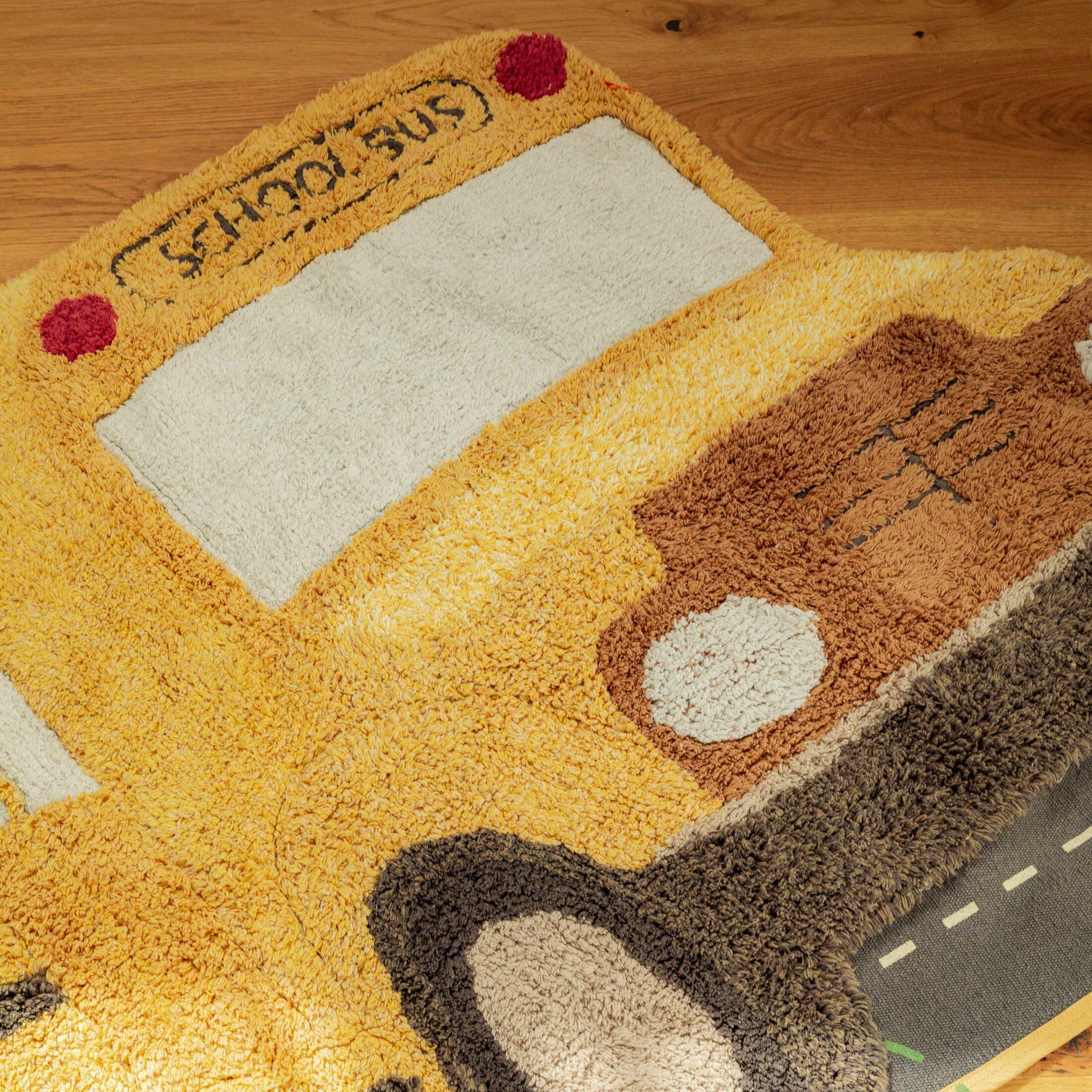 Who wants to drive the Washable School Bus rug? Crafted with care and attention to detail, this bus-shaped washable rug combines playful design with artisanal detail.