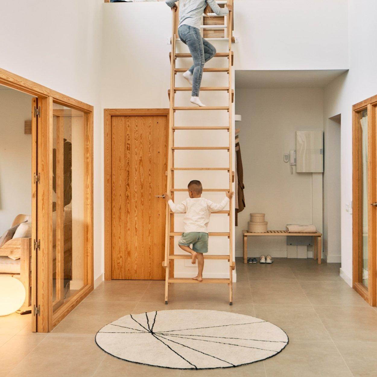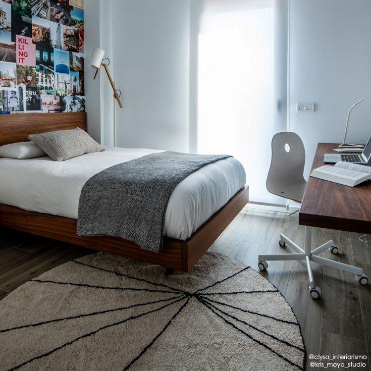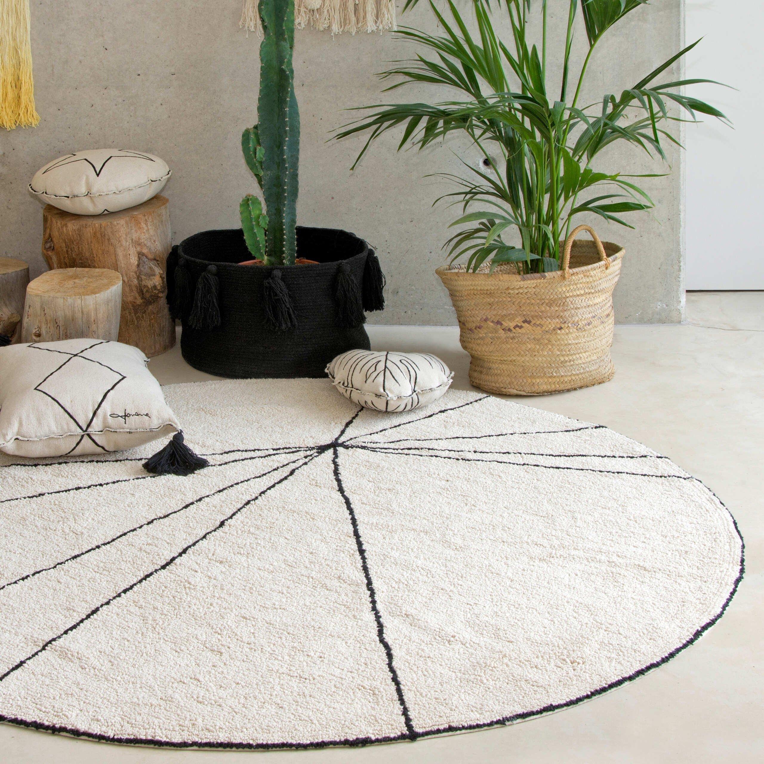The geometric style of this washable rug is the perfect fit for your Scandi decor in black & white. Round natural base made in loop technique, with black lines and edging. And a versatile piece to balance more colorful spaces. It is ideal for a teen’s room, or for a cool kids’ room.