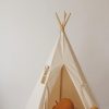 • Your little adventurer may spend long hours exploring the world and playing, but upon return he or she needs a place to rest, eat, and make plans for further adventures. A teepee literally means a dwelling, and is a word used by the Sioux, the indigenous people of the Great Plains. It is a space for all kinds of fun. When the play is finished, you can pack the teepee back in the cover and put it away, for example, in the corner of the room. It does not take much space when folded, and the cover enables you to easily take it outdoors. There is a pocket inside where children can hide their toys, books and other treasures. The white background of the tepee fits any interior! PART OF THE WILDFLOWERS COLLECTION The “Wildflowers” teepee features a pattern created in collaboration with illustrator Kasia Goraj-Stróżyńska. It was inspired by a meadow in the summer and holiday adventures, while doe and bees create an idyllic atmosphere This was our first original teepee model, and is frequently chosen by our customers. Made of natural materials: 1% cotton fabric and pine poles. Thanks to its five-wall structure, the tent is stable when it is put up, the poles are rounded and placed in tunnels sewn together at the bottom. The teepee is perfect to use at home, in the garden or at the beach. The set includes a play tent, poles and a cotton cover. Feel free to complement it with our beautiful decorations and accessories. Fabric: 1% OEKO-TEX® certified cotton. Fabric weight: 7.67 Washing temperature: up to 86°F. Pine poles: 7.9 in. Height when put up: 66.9 in. Base diameter: 47/52 in.Perfect for epic outdoor adventures or rainy-day indoor playdates, our adorable teepee tents give kids a peaceful place to hide out and let their imaginations run wild.The “Wildflowers” Teepee Tent features a majestic print created by illustrator Kasia Goraj-Stróżyńska.