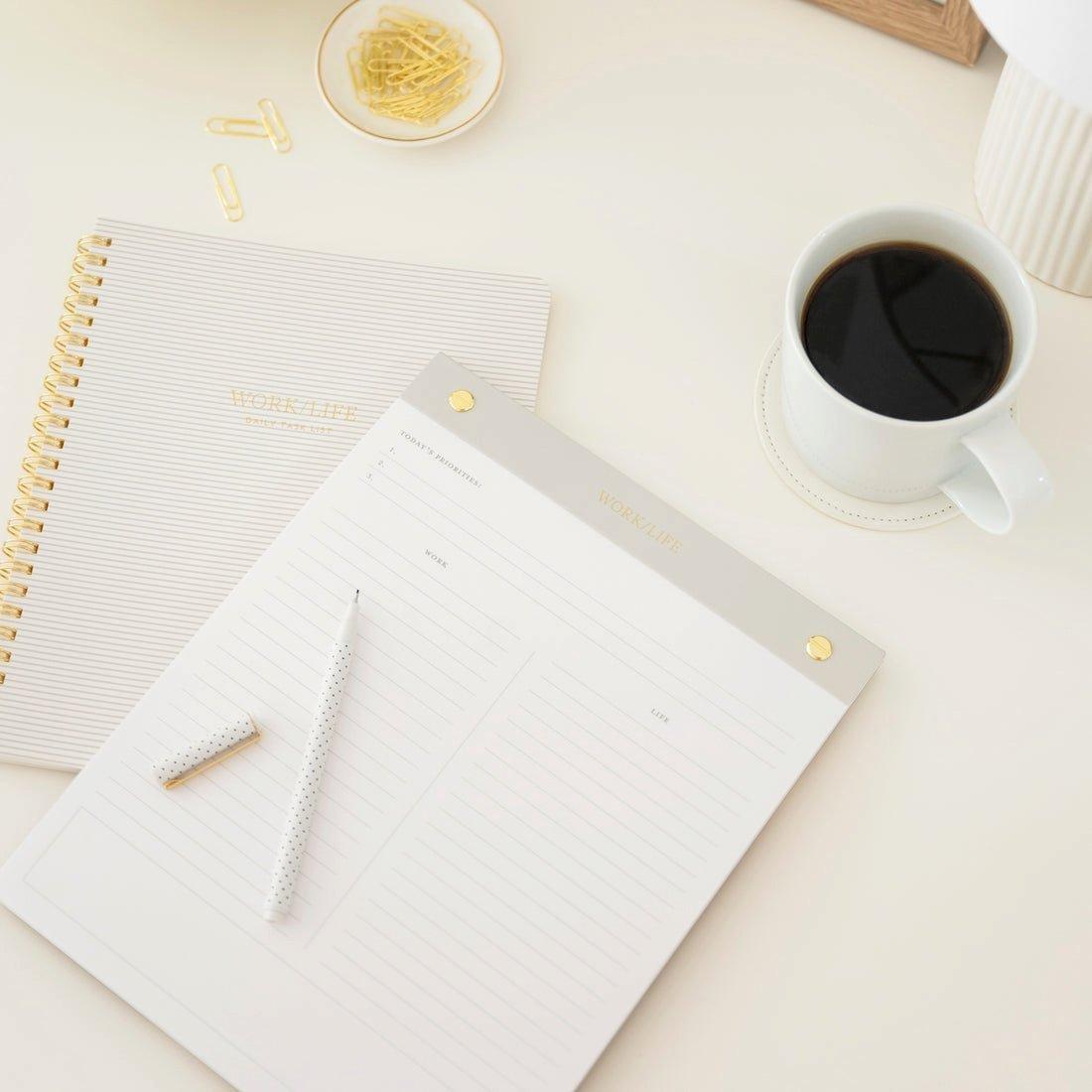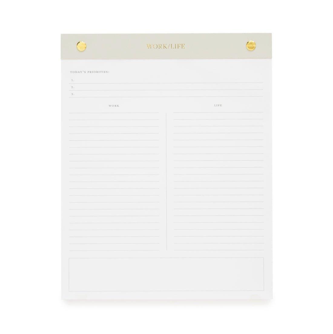 • Do it all. In style. The signature Work/Life Guided Notepad makes multi-tasking all the important parts of your day a little bit easier with 50 guided pages featuring divided task lists and priorities markers. Because if you’re anything like us, you have plenty of those.